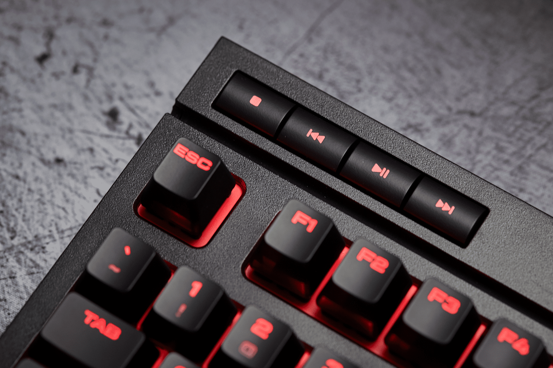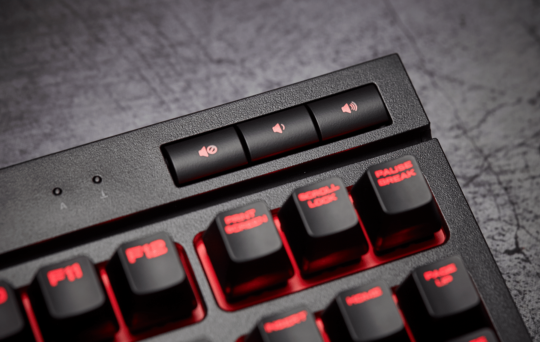 Auch in Hinsicht auf die Konnektivität weiß diese Tastatur von Corsair durchweg zu überzeugen. Am oberen Bereich der Corsair K63 sind verschiedene Medientasten angebracht, die etwa den Videoplayer oder das Sound-System des Endgerätes, für welches das Keyboard genutzt wird, aktivieren. Auch kann hier die Lautstärke des Devices problemlos eingestellt werden. Nicht zu vergessen ist die Play-und-Stop-Funktion. An den Seiten gibt es zudem Anschlüsse für USB und Kopfhörer. Dadurch kann das Corsair K63 Keyboard durchweg in Hinsicht auf seine Konnektivität und auch die Anbringung seiner Tasten überzeugen.