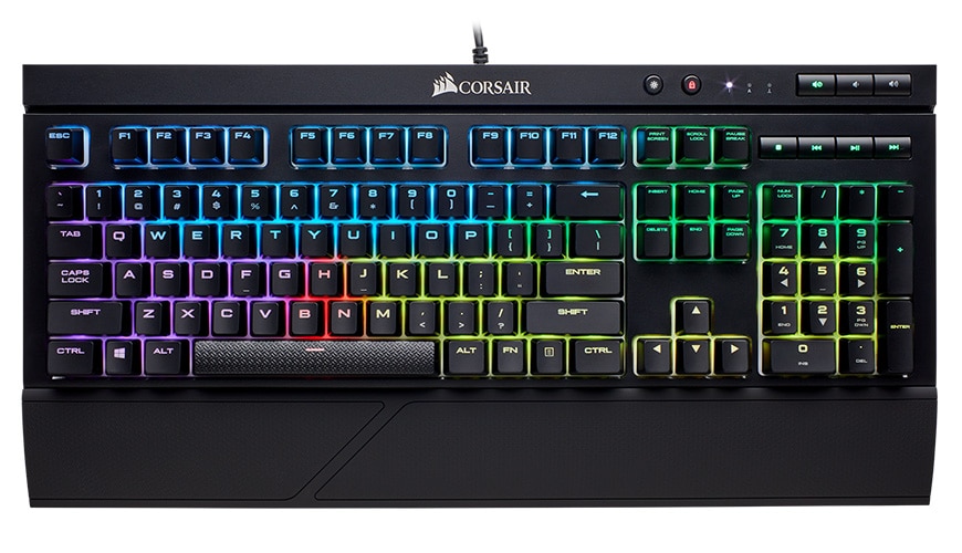 Mit der “Corsair K68 RGB“ erscheint die wasser- und staubfeste Gaming-Tastatur nun auch mit RGB-Beleuchtung. Zertifiziert mit IP32 haben Getränke und Schmutz keine Chance. Jede der “Cherry MX-RGB“-Tasten verfügt über eine gummierte Abschirmung, welche Flüssigkeiten und Festkörper abwehren, ohne die RGB-Hintergrundbeleuchtung zu stören. Jede Taste ist mit einer eigenen Beleuchtung ausgestattet, die individuell programmiert werden kann.