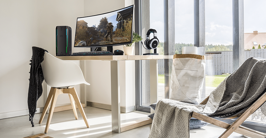 Die Hardware wird hochkant in einem zylindrischen Gehäuse verbaut und an den beiden Seitentüren finden sich jeweils ein Radiator – einmal für die CPU und einmal für die GPU. Ein Lüfter im Deckel befördert die warme Luft nach draußen. Mit 20 x 17,3 x 38 cm ist der PC angenehm klein.