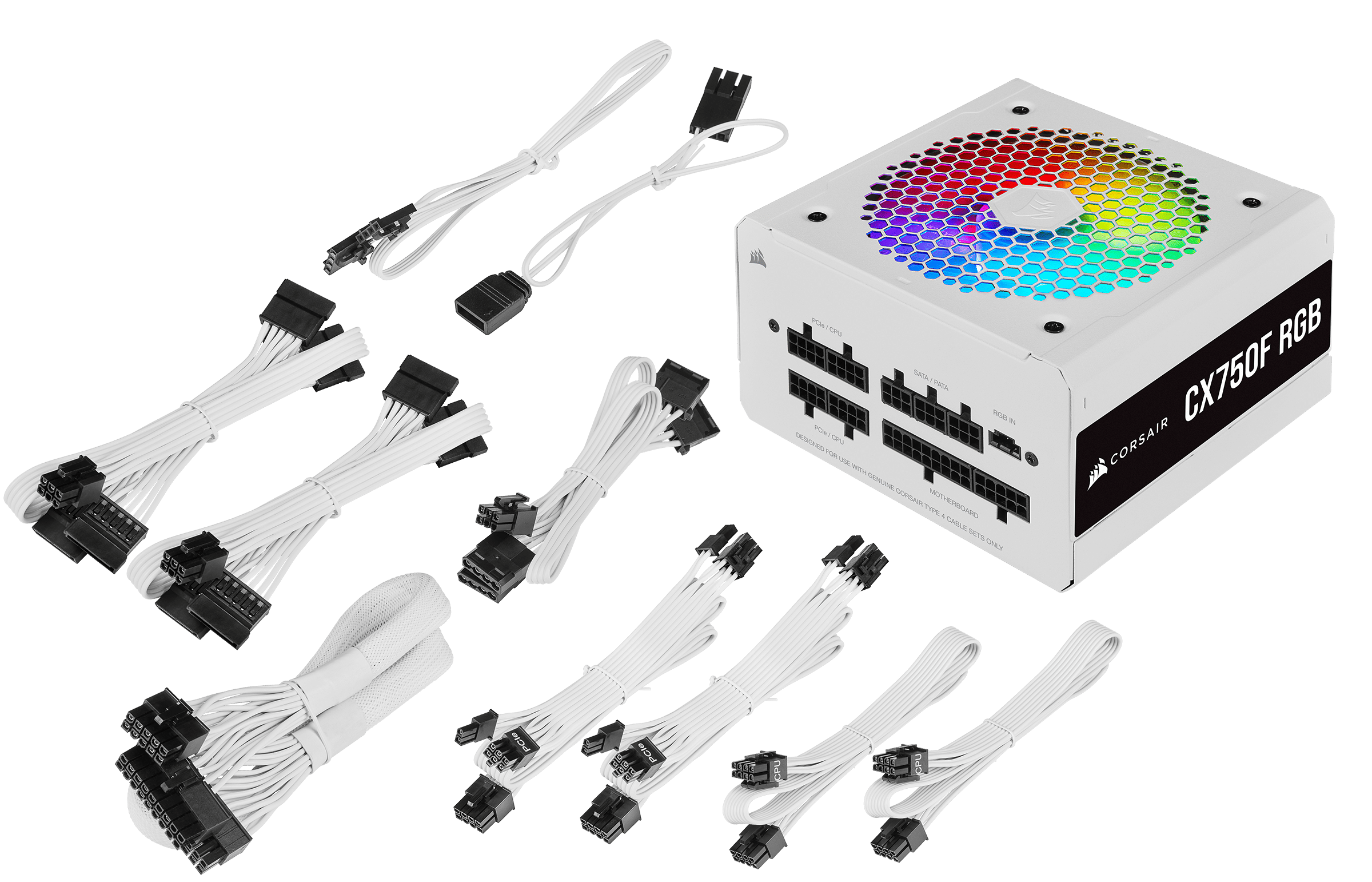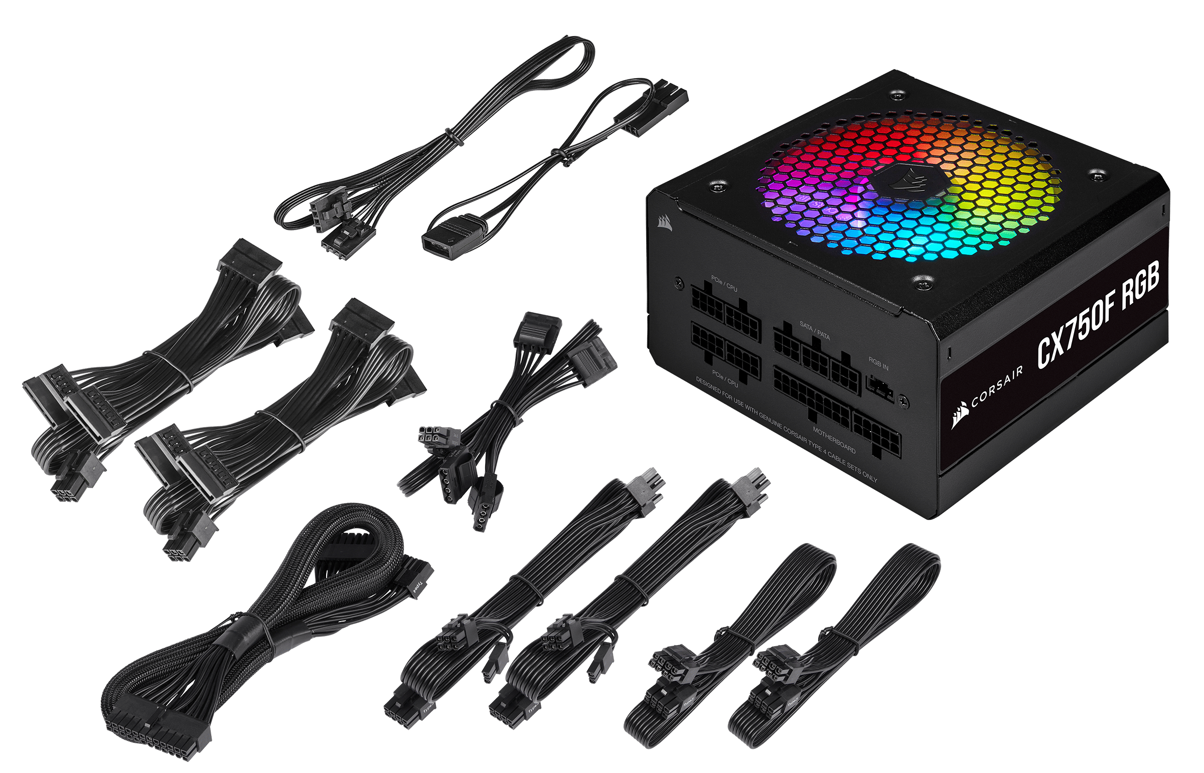 Die CX-F RGB-Netzteile orientierten sich am Bedarf des jeweiligen Computers. Ein komplett modulares Kabelsystem sorgt dafür, dass nur benötigte Kabel angeschlossen werden müssen.