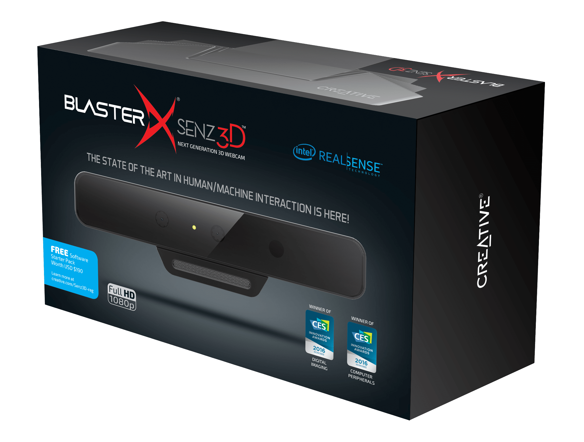 Auf der gamescom hat Creative seine neue BlasterX Senz3D-Kamera vorgestellt. In einem Aluminiumgehäuse wurden mehrere Sensoren zur Video- und Audioerfassung verbaut.