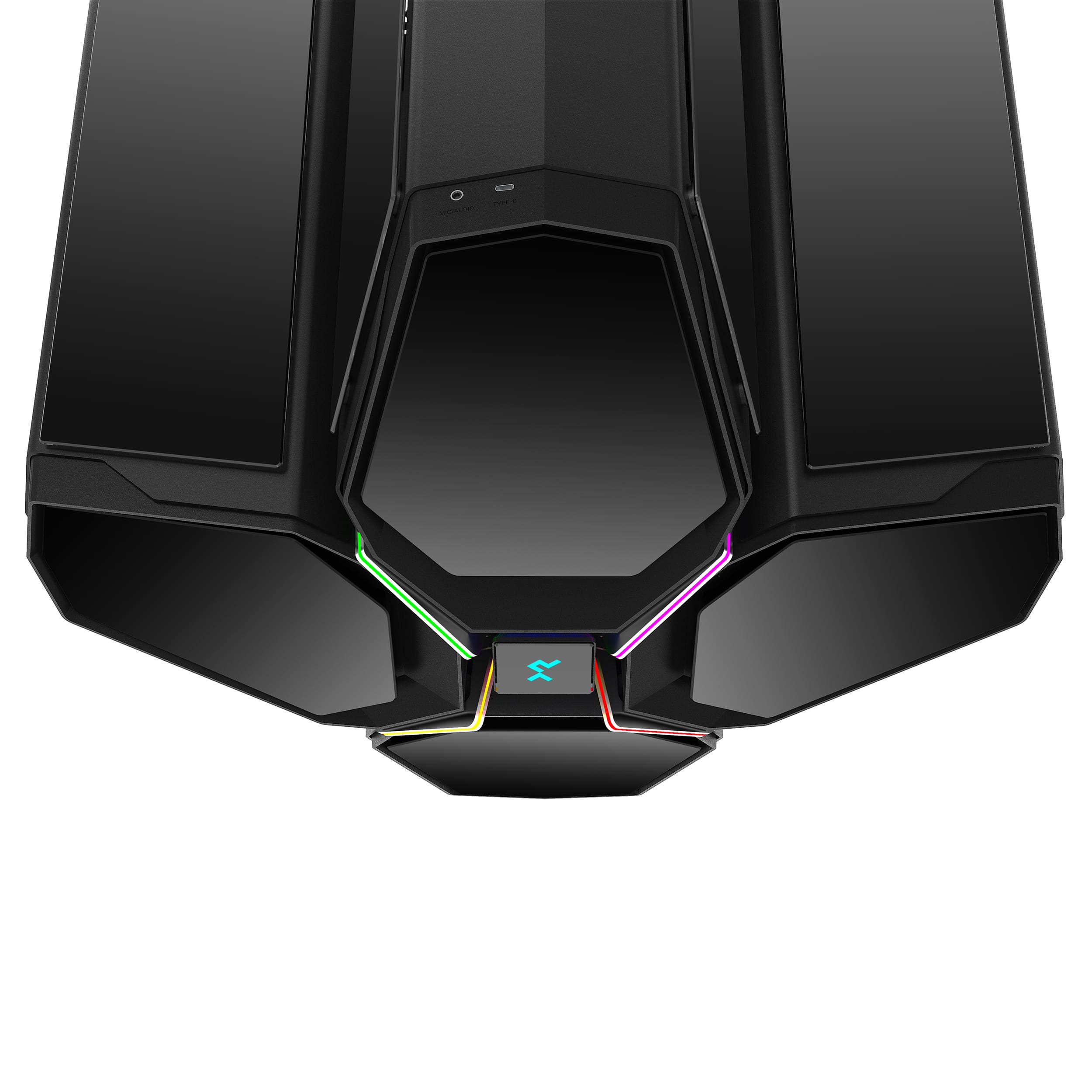 Die Frontplatten jeder Kapsel lassen sich von Hand öffnen, um einen zusätzlichen Luftstrom zu erzeugen, ohne dass zusätzliche Software erforderlich ist. Vier RGB-LED-Lichtleisten sind in die Frontblende integriert, die bis zur mittleren Einschalttaste führen.
