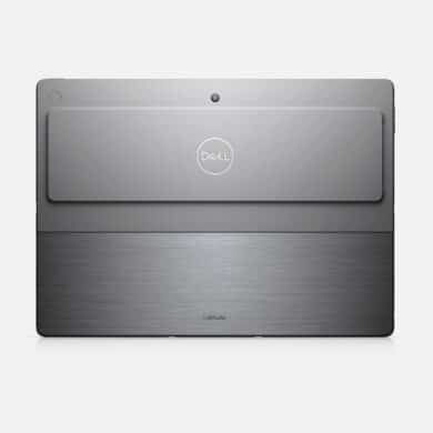 Auch ohne Tastatur kann das Tablet aufrecht stehen. Dank des Kickstands ist die Tastatur nicht zwingend nötig. Ohne Tastatur kommt das Tablet auf 851 Gramm, nimmt man die Tastatur dazu, kommen noch einmal 351 Gramm hinzu. An der Rückseite des Latitude 7320 befindet sich eine 8-Megapixel-Kamera, welche wie die 5-MP-Webcam Videos in 1.080p aufzeichnet. Optional kann eine Infrarot-Kamera auf der Vorderseite des Tablets Windows Hello 4.0 unterstützen. Gegen Aufpreis gibt es auch einen Fingerabdrucksensor oder ein Qualcomm Snapdragon X20 LTE-Modem. Was die Anschlüsse angeht hat das Dell Latitude 7320 Detachable zwei Thunderbolt 4-Ports (USB-C) und einen Kopfhöreranschluss. Dabei funkt das Tablet über Wi-Fi 6 (802.11ax) und Bluetooth 5.1.