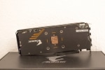 Das Kühlerdesign basiert auf einer großen Kupferplatte, die direkt auf dem Grafikchip aufliegt. Zwei kleinere Platten bedecken die RAM-Bausteine und der Block mit den Kontaktflächen für GPU und RAM wird über zwei Heatpipes mit einem zweiten Block verbunden, der die Spannungswandler kühlt.