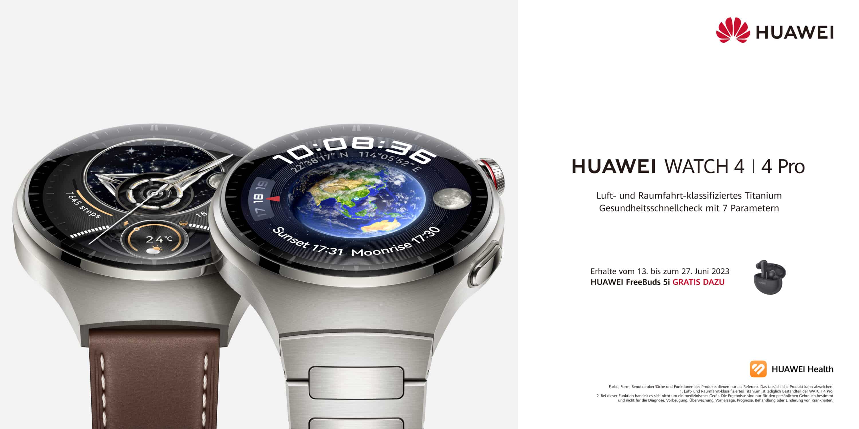 Die Akkulaufzeit der Watch 4, die mit einem 530 mAh Akku ausgestattet ist, wird von Huawei mit bis zu 3 Tagen angegeben, während die Watch 4 Pro mit ihrem 780 mAh Akku bis zu 4,5 Tage durchhalten soll. Mit einem speziellen Energiesparmodus kann die Laufzeit auf bis zu 21 Tage verlängert werden. Die Watch 4 und die Watch 4 Pro sind ab dem 13. Juni im Huawei Online Store für 449 Euro bzw. 549 Euro erhältlich. Die Watch 4 Pro mit Titanarmband kostet 699 Euro. Vom 13. bis 27. Juni 2023 gibt es zu allen Bestellungen über den Online Store die FreeBuds 5i gratis dazu sowie weitere Vergünstigungen.