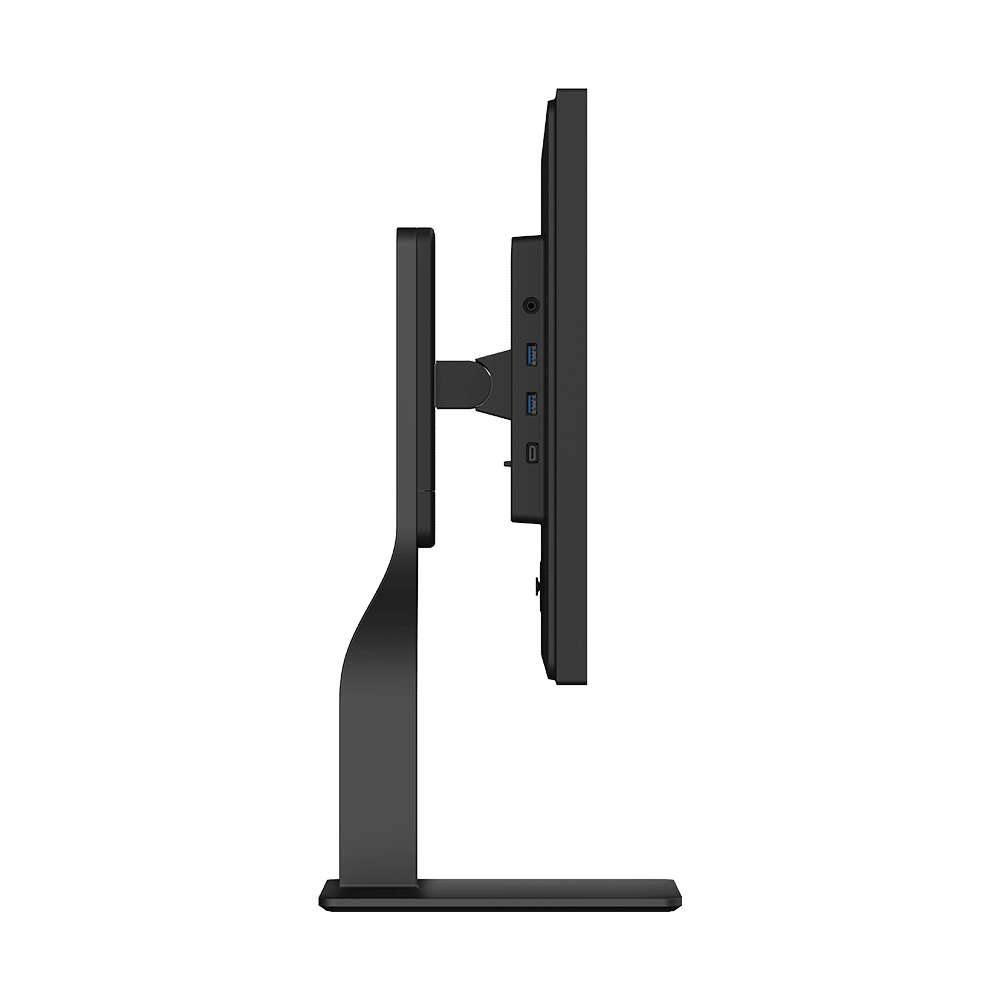 Damit lässt sich der Monitor zwischen +23 Grad und -7 Grad neigen, um 122 mm anheben oder senken und um 90 Grad in die Vertikale drehen (Pivot-Funktion).