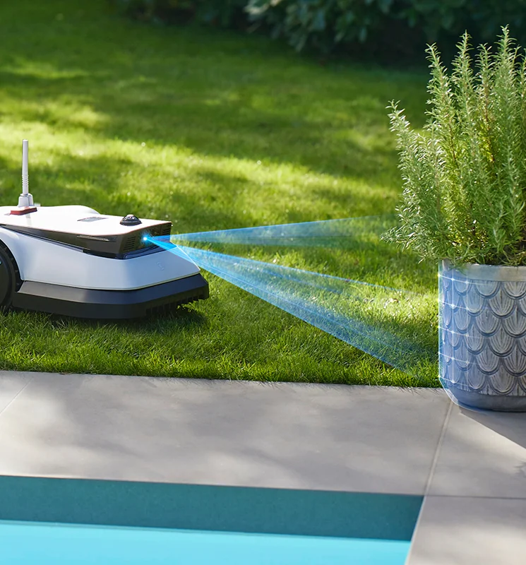 Dank seiner „Robotic Vision“ ist der Goat G1 in der Lage, zuverlässig, zentimetergenau und autark im Garten zu navigieren. Mit einer 360-Grad-Kamera auf der Oberseite erkennt der Roboter seine Umgebung und bewegt sich zuverlässig durch den Garten, während Objekte und Hindernisse erkannt und vermieden werden. Hier kommt die AIVI-3D-Technologie der eigenen Saugroboter zum Einsatz.