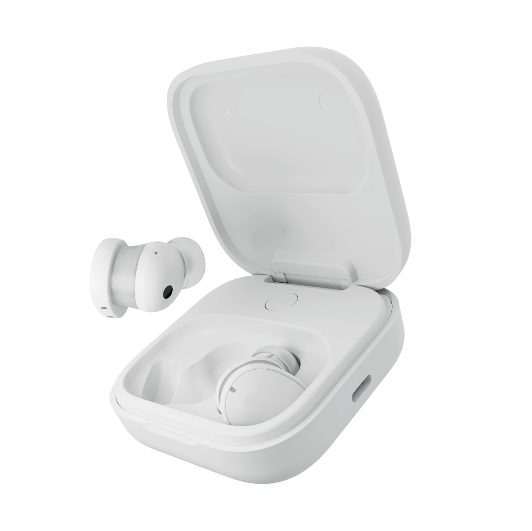 Eine Besonderheit neben dem nachhaltigen Design aus recycelten Materialien ist der austauschbare Akku. So kann nicht nur die Batterie in den Earbuds selbst, sondern auch die des beiliegenden Ladecase gewechselt werden.