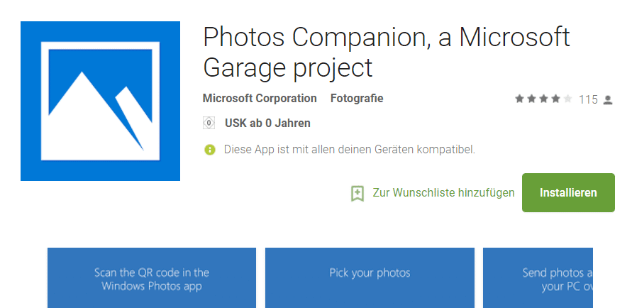 Microsoft hat eine App für Android- und iOS-Geräte veröffentlicht, um Fotos schnell und einfach auf einen Windows PC zu übertragen. Voraussetzung hierfür ist Windows 10, die Photos Companion App und beide Geräte müssen sich im selben Netzwerk befinden.