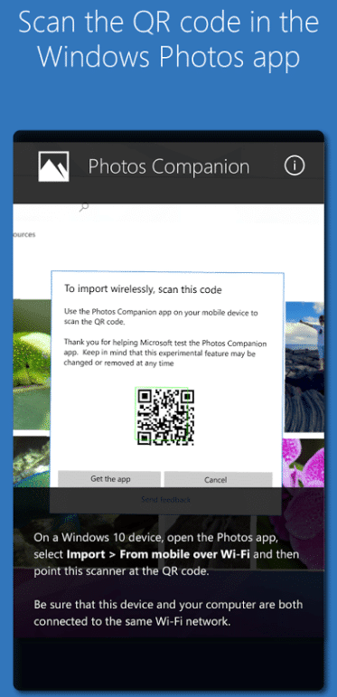 Öffnet nun die App auf dem Smartphone und geht am PC auf den Punkt Importieren, dort steht euch jetzt der Punkt Vom Mobilgerät über WLAN zur Wahl. Scannt mit der App nur noch den angezeigten QR-Code, schon könnt ihr mit eurem Android- oder iOS-Gerät direkt Fotos an euren Windows PC übertragen.