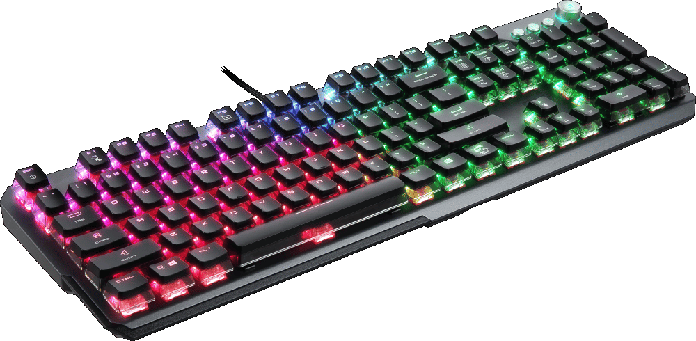 Mit der intelligenten Dual-Touch-Lautstärkeregelung und der integrierten Mediensteuerung kannst du zudem bequem mit deinen Fingerspitzen die Multimedia-Inhalte steuern. Dabei ist das Keyboard mit MSI ClearCaps ausgestattet, unter deren transparentem Aussehen die RGB-Beleuchtung besonders gut zur Geltung kommt. Die mitgelieferte ergonomische Handgelenkauflage aus Memory-Schaumstoff verbessert die Ergonomie noch einmal deutlich und kann frei platziert werden.