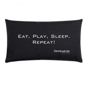 - kleine Kissen mit Gamersprüchen wie „no cheat, just skill“
