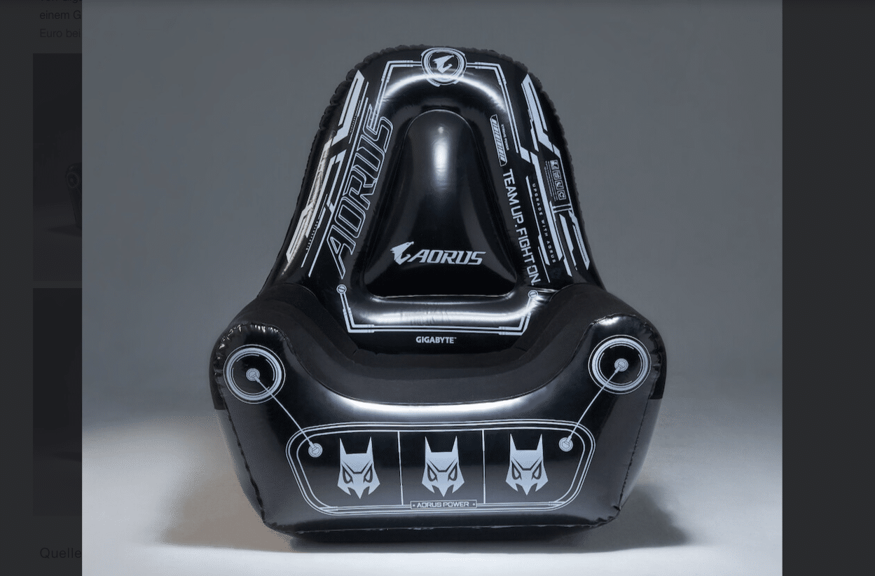 Auf dem stark umkämpften Markt der Gaming-Stühle muss man derzeit neuartige Ansätze finden, um erfolgreich sein zu können. Schließlich ist mit Ikea nun sogar einer der weltweit größten Möbelhersteller in dem Segment eingestiegen. Gigabyte scheint mit seiner Gaming-Sparte AORUS nun eine passende Nische gefunden zu haben, die bislang noch so gut wie unbesetzt ist. Im Rahmen einer Ankündigung bei Twitter veröffentlichte das taiwanische Tech-Unternehmen erste Bilder seines kommenden Möbelstücks speziell für Gamer. Das Besondere daran ist nicht nur die düstere Optik, sondern auch das aufblasbare Design. Im aufgeblasenen Zustand erinnert er fast schon an Szenen aus einem Science Fiction Film.