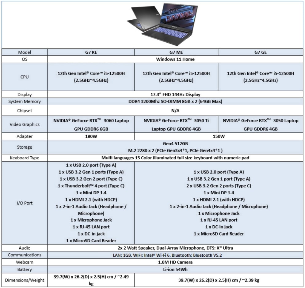 Gigabyte aktualisiert seine beliebten Gaming-Notebooks mit Hinblick auf das Preis-Leistungsverhältnis auf die 12. Intel-Core-Generation. Das Gigabyte G5 und G7 erhalten ein Update und kommen nun mit einem Intel Core i5-12500H, sowie maximal einer Nvidia GeForce RTX 3060 Grafikkarte daher.