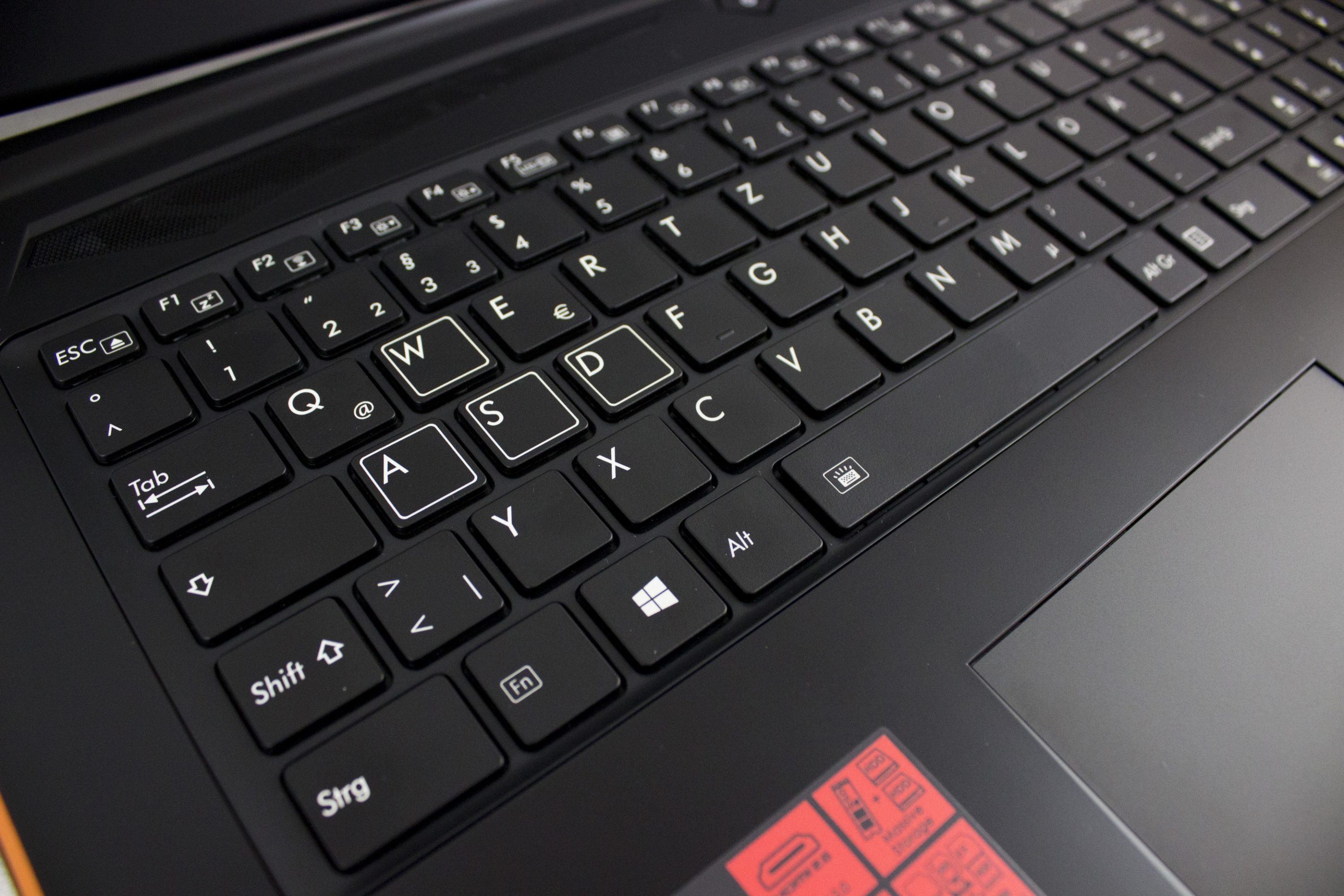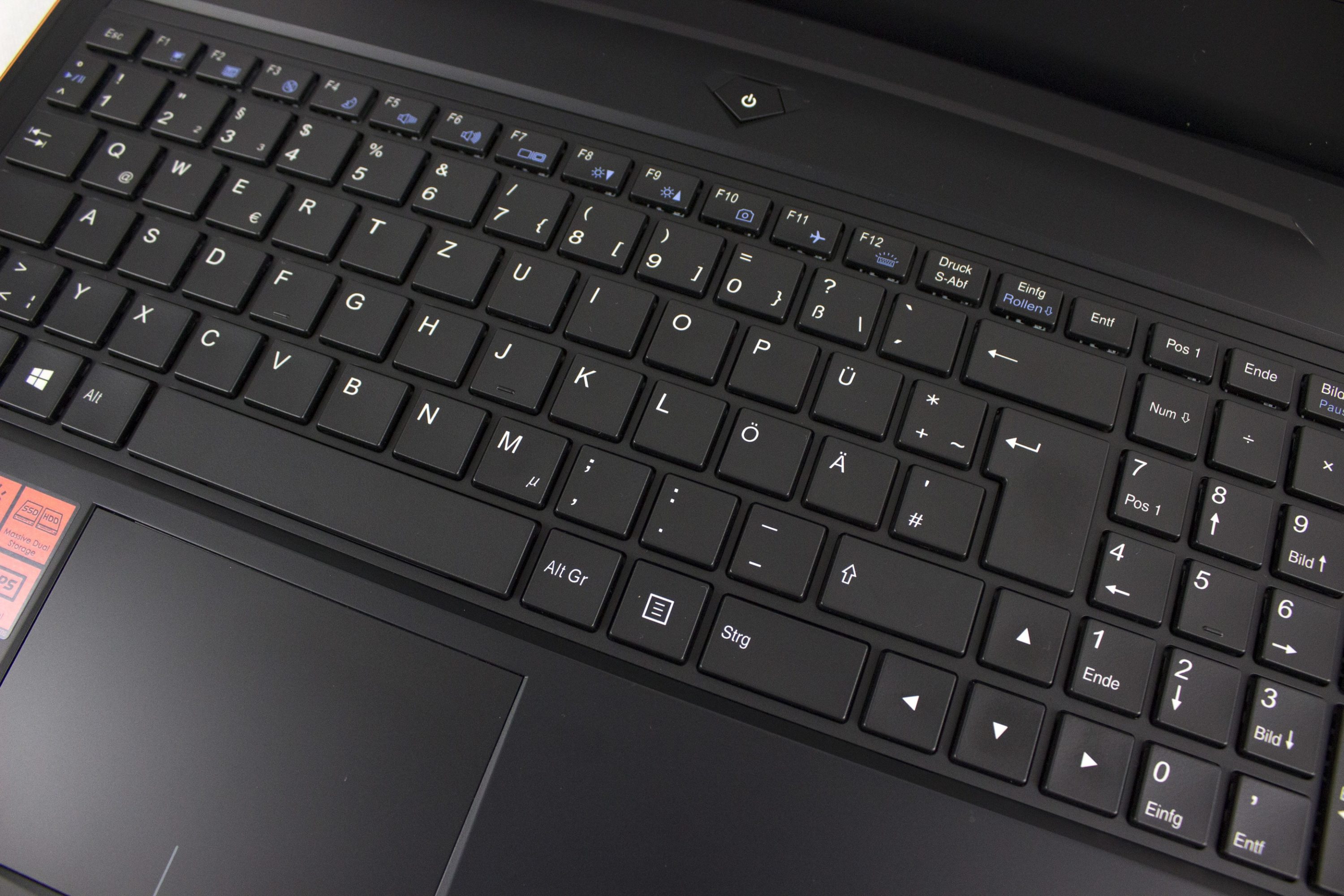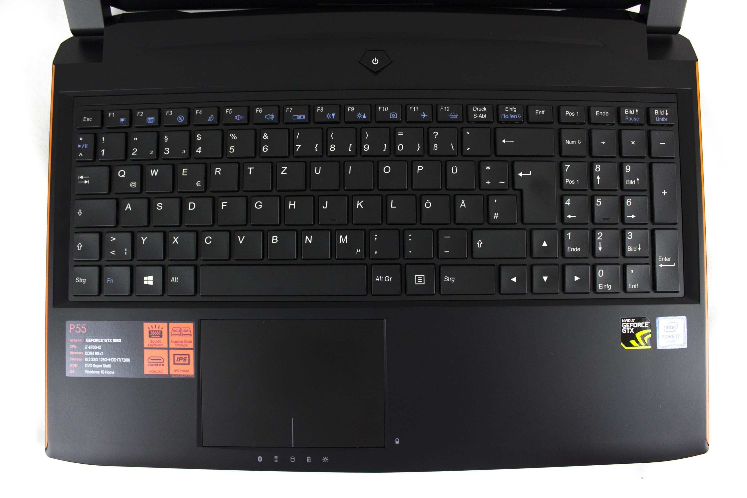 Die Tastatur wird mit weißen LEDs beleuchtet und besitzt einen guten Druckpunkt ohne durchzubiegen. Allerdings handelte es sich beim P57X v6 um ein Presample, bei dem die Tastatur noch nicht final war. Das einteilige Touchpad ist auch sehr angenehm zu bedienen.