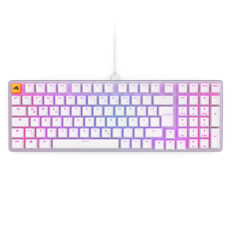 - Als Barebone oder mit linearen Glorious Fox Switches und Doubleshot Tastenkappen verfügbar