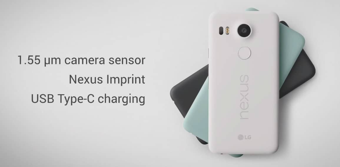 Als zweites Smartphone wurde das Nexus 5X präsentiert. Die Spezifikationen unterscheiden sich kaum vom Nexus 6P. Es besteht zum Beispiel nicht aus Aluminium und verfügt über einen größeren Akku. Erhältlich wird es in den Farben Carbon Black, Quartz White und Ice Blue sein.