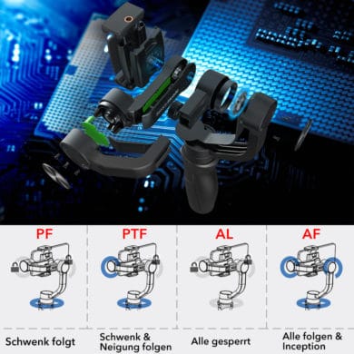 Zu den weiteren Besonderheiten des Sticks zählen die verschiedenen Aufnahmemodi. Zuerst ist hier die Gesichts- und Objektverfolgung zu nennen. Diese macht es auch Laien möglich, fokussiert zu filmen. Hilfreich sind dabei auch die Zoomfunktion, die Fokussteuerung sowie die Folgemodi in Schwenkung und Neigung.