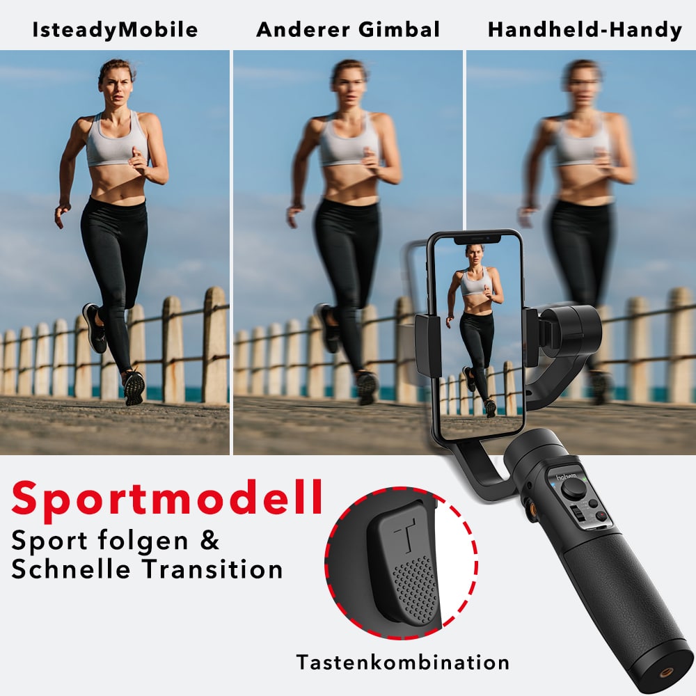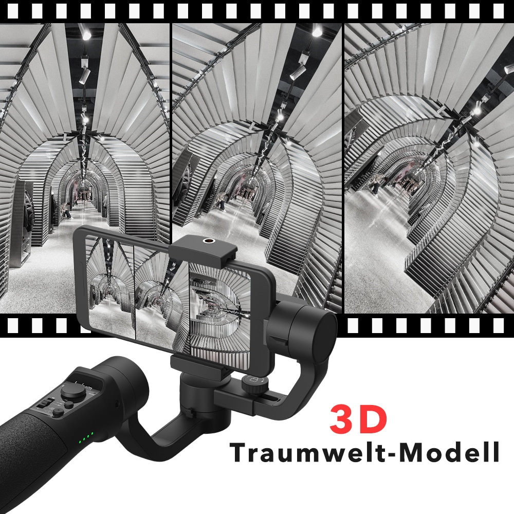 Ebenfalls vorhanden ist ein 3D-Modus, welcher dafür sorgt, dass das verwendete Smartphone während der Aufnahme spontan um 360 Grad vertikal gedreht werden kann. So eröffnen sich ganz neue filmerische Möglichkeiten. Auch der Sportmodus, den Hohem mit dem neuen Stick einführt, dient der Professionalisierung der Aufnahmen: Auch beim Rennen, Radfahren und Springen bleibt die Aufnahme wackelfrei. Möglich macht das ein Hochleistungsmotor, der Achsüberschneidungen unmittelbar feststellt und für einen entsprechenden Ausgleich sorgt.