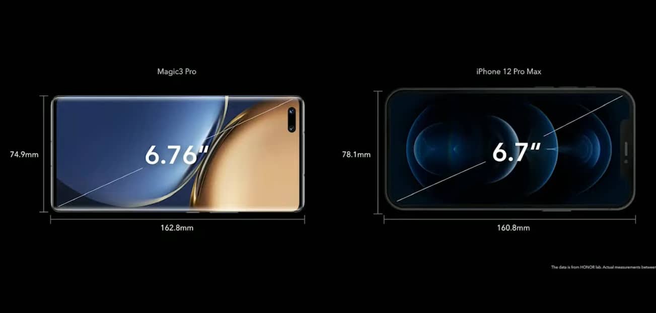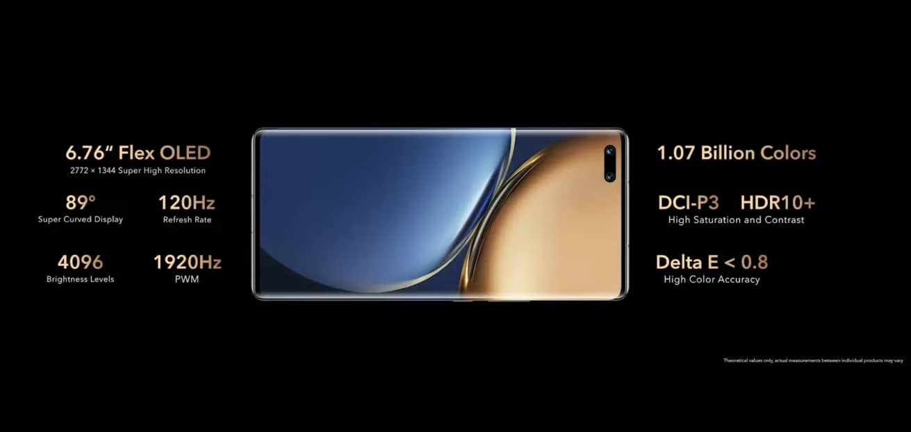 Das Honor Magic3 & Honor Magic 3 Pro setzen auf ein 6,76 Zoll großes OLED-Display, das zu den Seiten hin zu 89 Grad gekrümmt ist. Damit erreicht man die bislang stärkste Display-Krümmung der Welt. Geboten wird zudem eine Bildfrequenz von 120 Hz, während der Screen den gesamten DCI-P3-Farbraum samt 1,07 Milliarden Farben darstellen kann. Auch der HDR10+ Standard wird unterstützt.