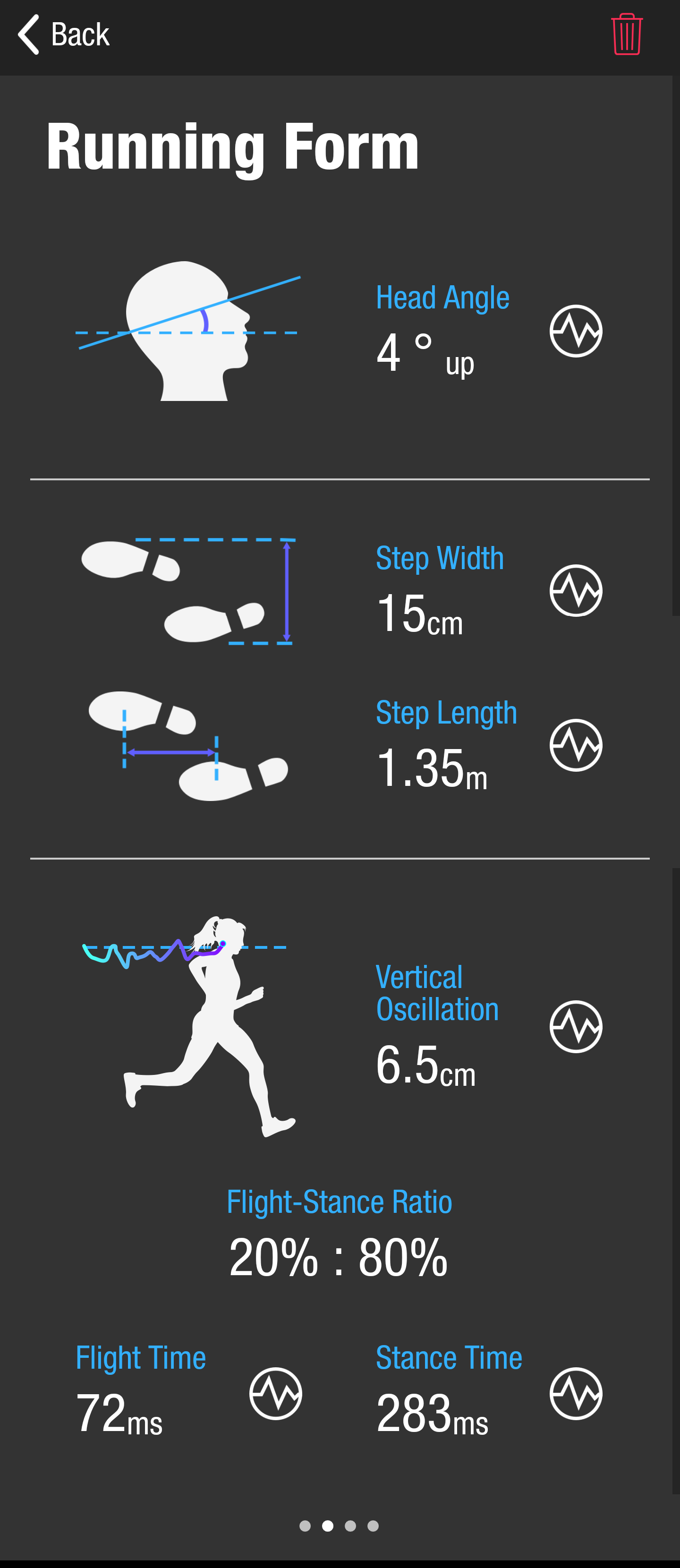 Analysiert werden indes zahlreiche Parameter, die von Bedeutung sein könnten. Kadenz, Symmetrie, Schrittlänge, Schrittbreite, Balance und der Neigungswinkel des Kopfes geben eindeutigen Aufschluss über das Laufverhalten des Anwenders. Aus den analysierten Daten kann abgeleitet werden, wie effizient und wie schonend gelaufen wurde. Daraus wiederum lassen sich mögliche Verbesserungen ableiten, die nicht nur zu besseren Resultaten, sondern etwa auch zu einem verminderten Verletzungsrisiko führen.