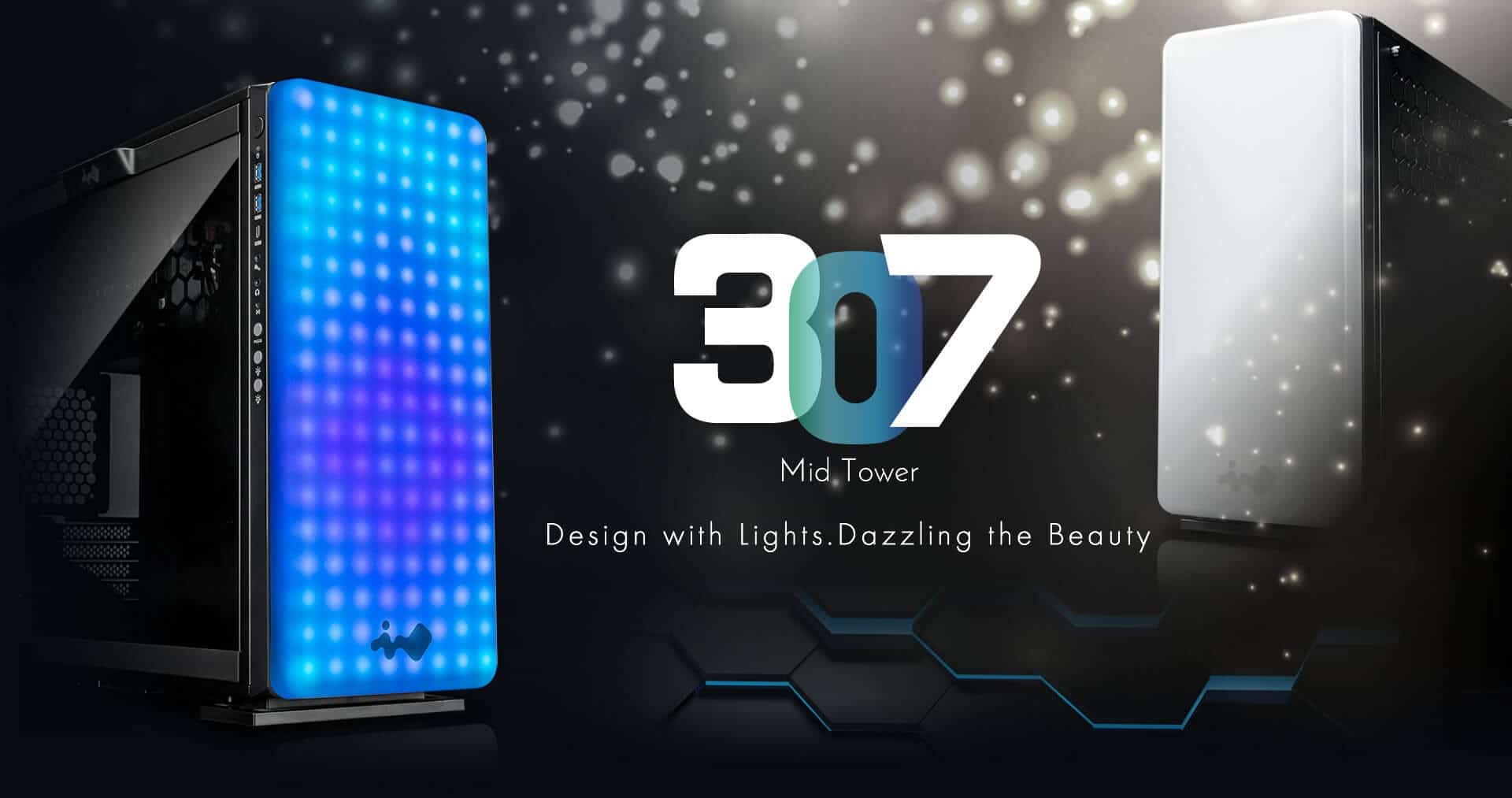 Hinsichtlich der Ausgestaltung und Ausstattung unterscheidet der „307“ sich ansonsten nicht von den anderen Gehäusen der 3er-Serie von „In Win“. Diese Reihe fiel indes besonders durch das außergewöhnliche Kühlkonzept auf. So werden Lüfter und Netzteil oberhalb des Mainboards vertikal montiert. Weiterhin können Lüfter am Boden und am rechten Seitenteil angebracht werden.