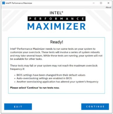 Intel hat das während der E3 vorgestellte Performance Maximizer Tool veröffentlicht, mit dem sich offene Prozessoren mit K- und KF-Suffix automatisch übertakten lassen. Das Tool ist kompatibel mit Coffee-Lake-Refresh-CPUs der 9000er-Serie. Außerdem wird ein Mainboard mit dem Z390-Chipsatz benötigt. Den maximalen Takt ermittelt die Software anhand einer Spannungs-Takt-Kurve.