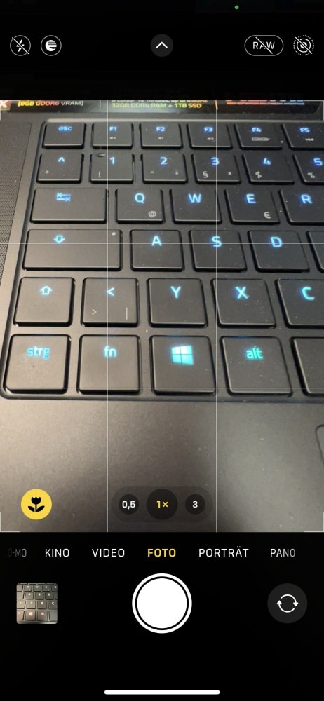 - Danach seht ihr beim Starten der Kamera, wenn ihr nah an ein Objekt herangeht, ein Symbol das eine Blume zeigt. Ist diese gelb markiert, ist der Makro-Modus aktiv.
