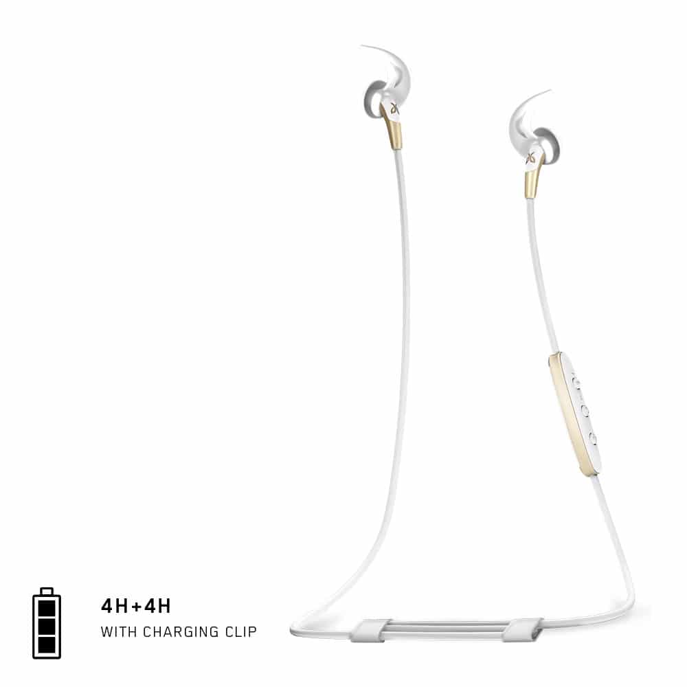 Selbstverständlich sind die Kopfhörer auch schweiß- und wasserabweisend. Durch die abnehmbaren Ohreinsätze lassen sich alle Teile leicht reinigen. Der Akkuleistung ist für bis zu 8 Stunden Laufzeit ausgelegt.