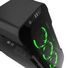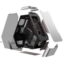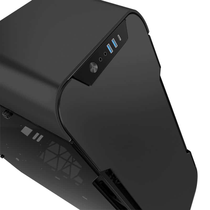 Beide Gehäuse-Versionen gibt es sowohl in schwarzem als auch in grauem Aluminium. Zudem ist ein I/O-Panel eingebaut, das neben dem Ein-/Ausschalter einen Audioein- und Ausgang bietet sowie zwei USB-3.0-Ports des Typ A und einen USB-3.0-Port des Typ C.