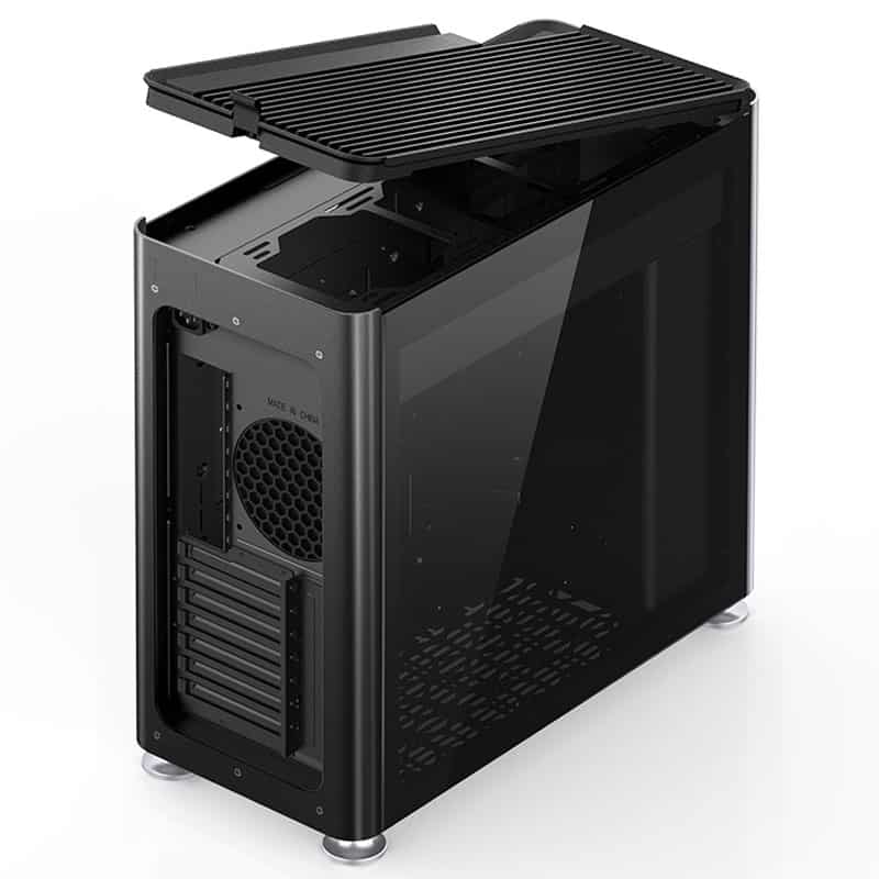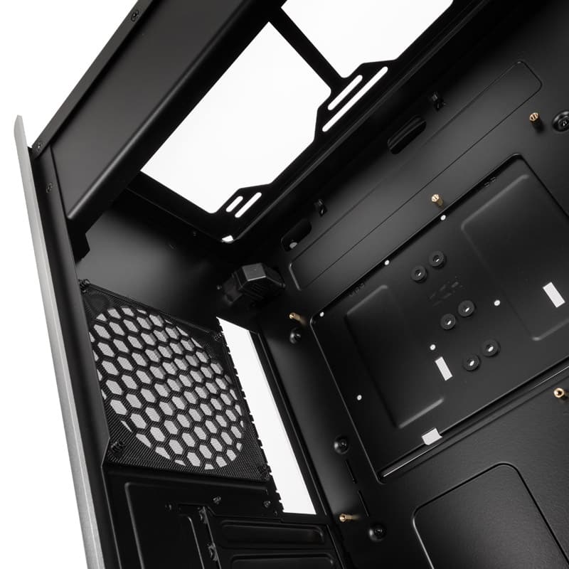 - Edles ATX-Gehäuse aus Aluminium, Stahl und Temperglas