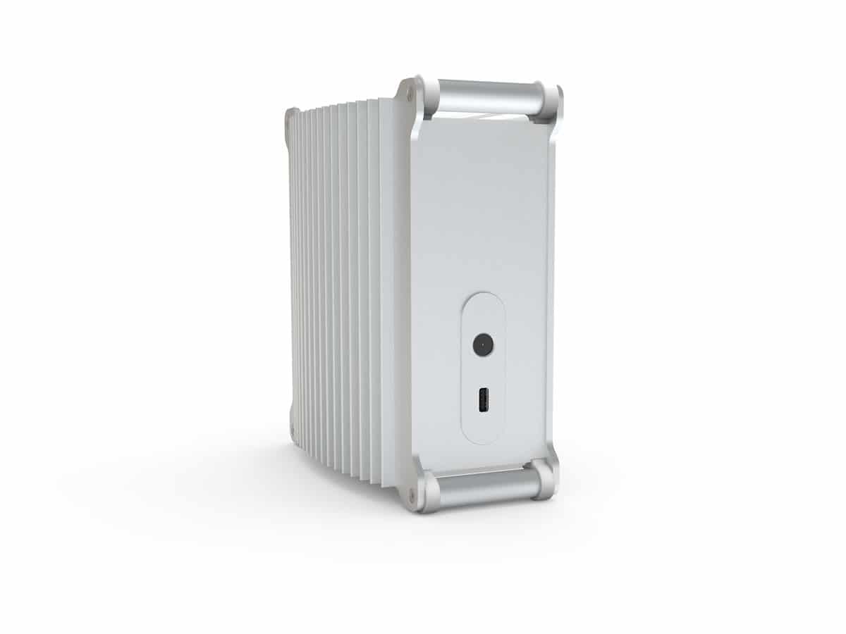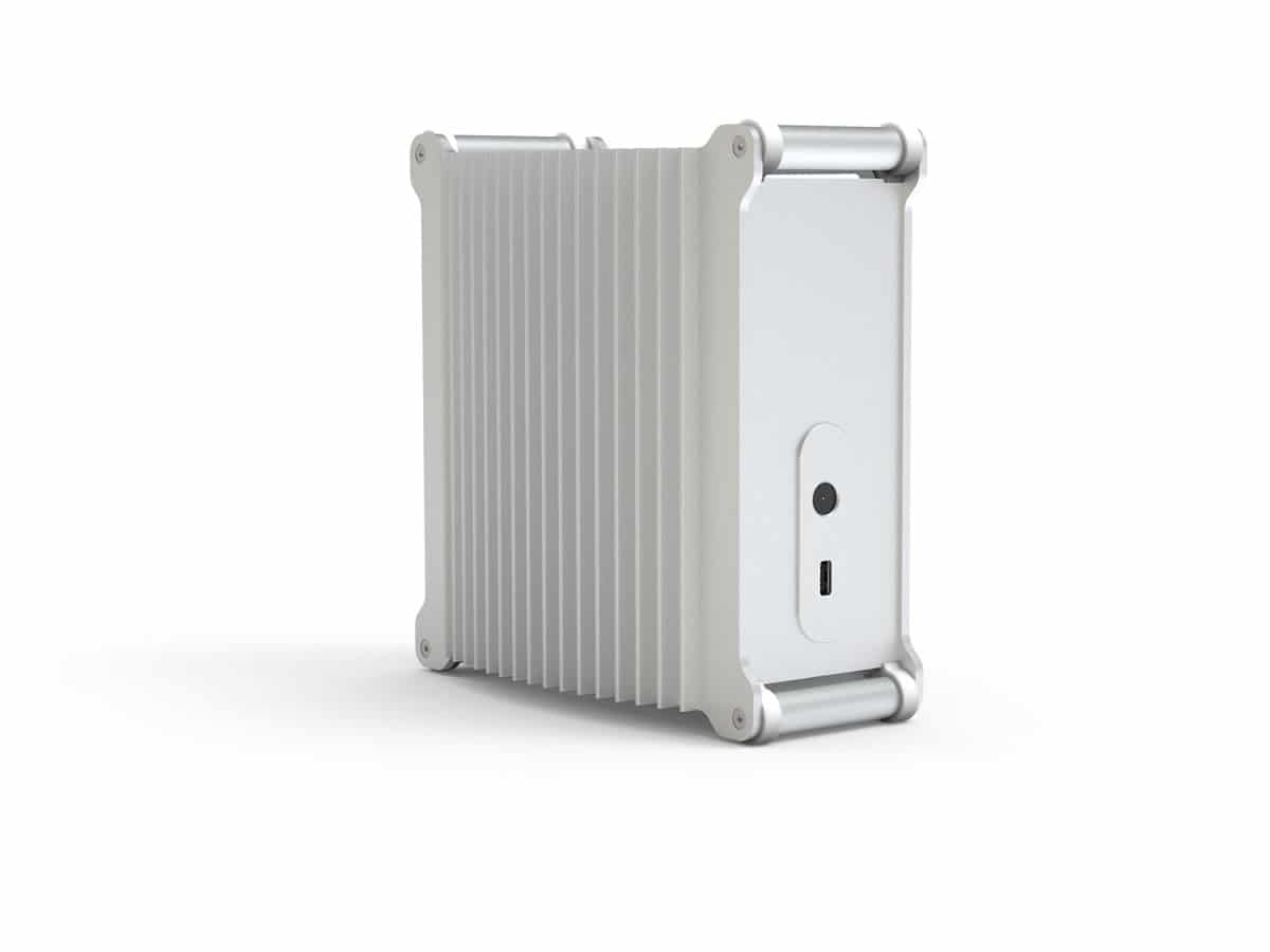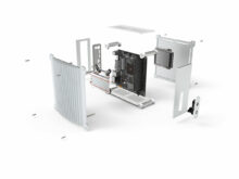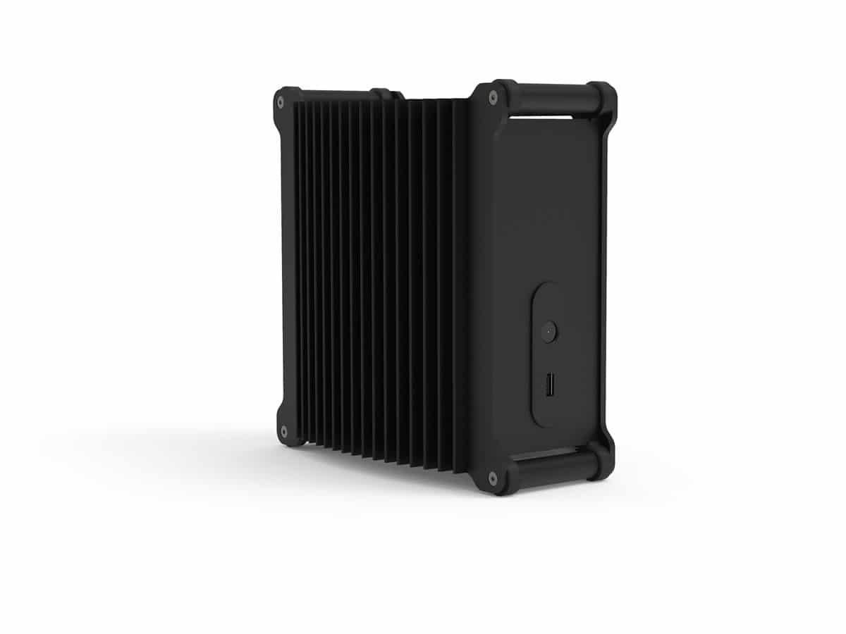Das Streacom DB1 kommt gerade einmal auf 1,8 kg bei den Maßen 222 × 222 × 101 mm (L × H × B). Mit nur acht Schrauben lässt es sich einfach komplett auseinander bauen und nach Wunsch können die Seiten in verschiedener Orientierung wieder angebracht werden. Dabei kann das DB1 liegend oder auch als Tower stehend verwendet werden. Der Frontanschluss des ITX-Gehäuses ist modular gestaltet und hat im Lieferumfang einen USB 3.0 Typ A Anschluss, welcher sich durch eine USB-Typ-C-Buchse austauschen lässt. Da für ein gängiges Netzteil kein Platz ist, hat Streacom das Nano PSU mit 90 Watt herausgebracht. Dieses ist genau auf die Dimensionen des Gehäuses ausgerichtet.