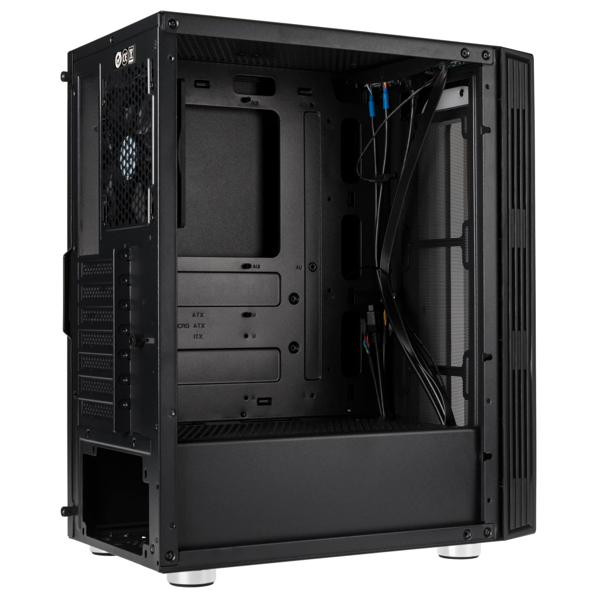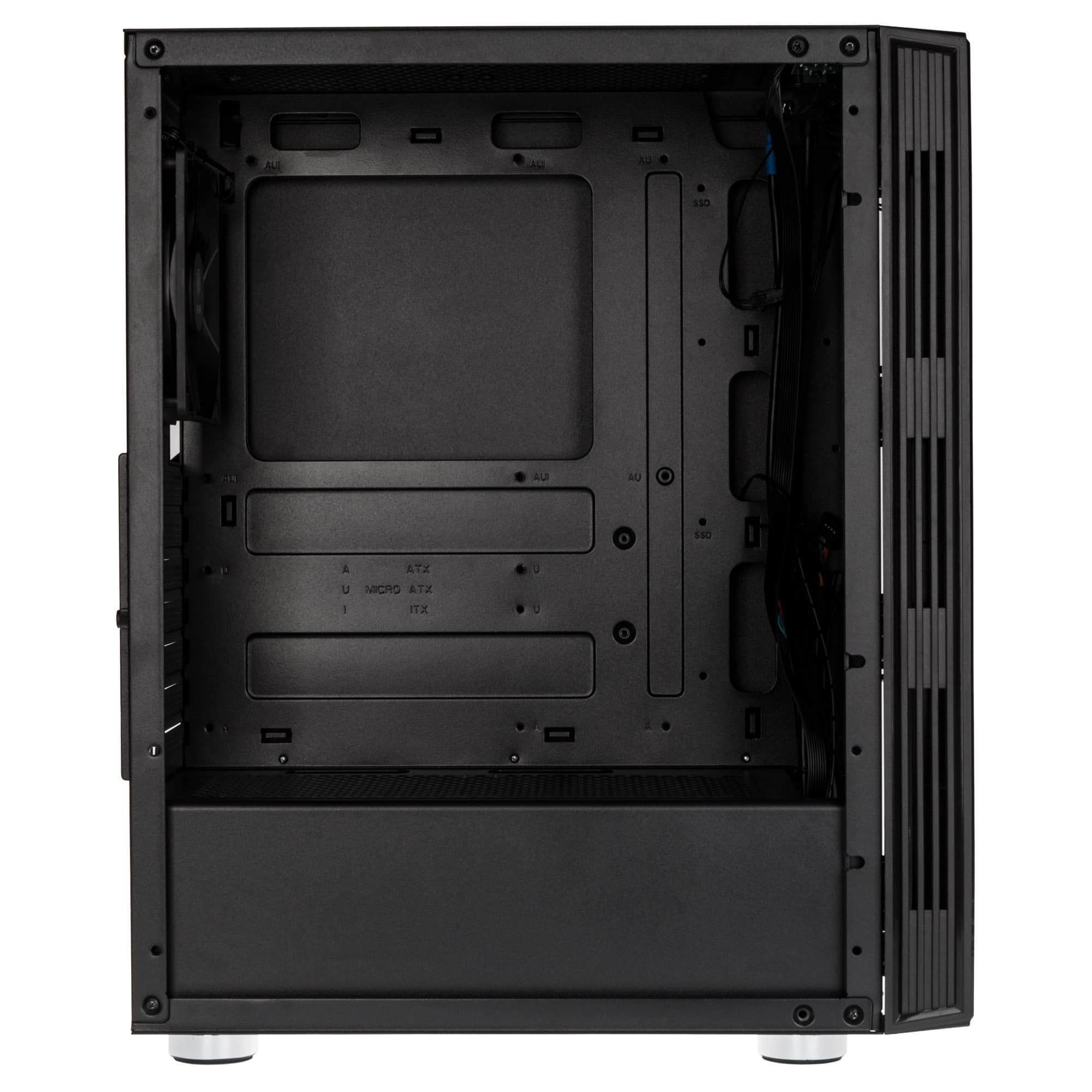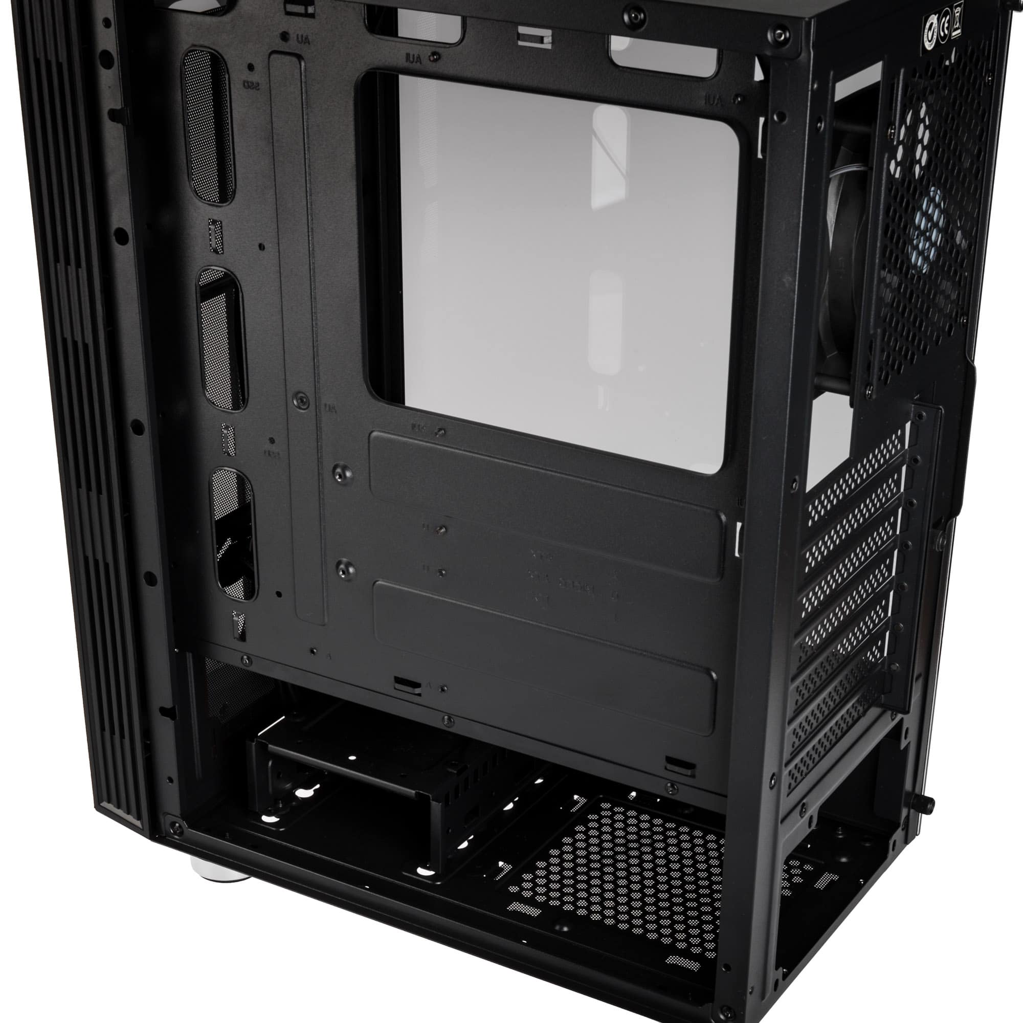 Im Inneren ist Platz für Mini-ITX, mATX- oder ATX-Mainboards sowie Grafikkarten mit bis zu 325 mm Länge. Eine Abdeckung für Netzteile ist ebenfalls vorhanden. Ab Werk wird ein 120 mm großer Lüfter mitgeliefert und es können bis zu fünf weitere Lüfter verbaut werden. An der Front, sowie an der Oberseite bietet sich Platz für jeweils einen 240-mm-Radiator. Die Vorderseite, der Boden und der Deckel sind mit magnetischen Staubfiltern ausgestattet. Es können CPU-Kühler mit einer Höhe von bis zu 160 mm installiert werden. Außerdem können bis zu drei 3,5 Zoll oder 2,5 Zoll Festplatten verbaut werden.
