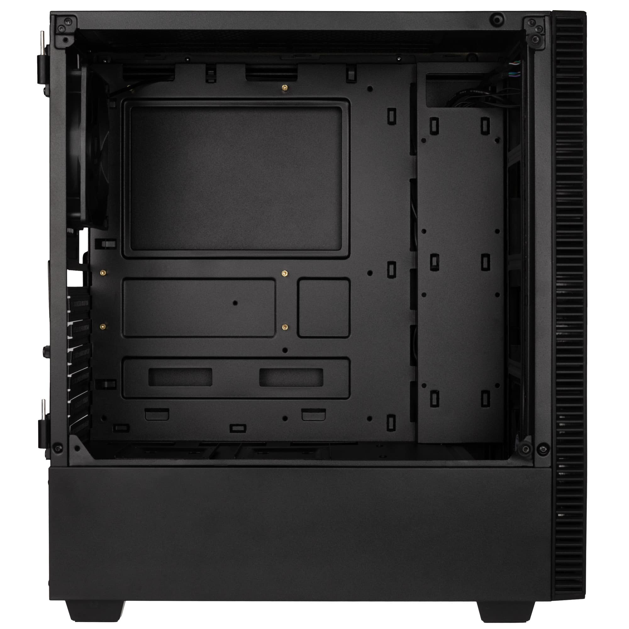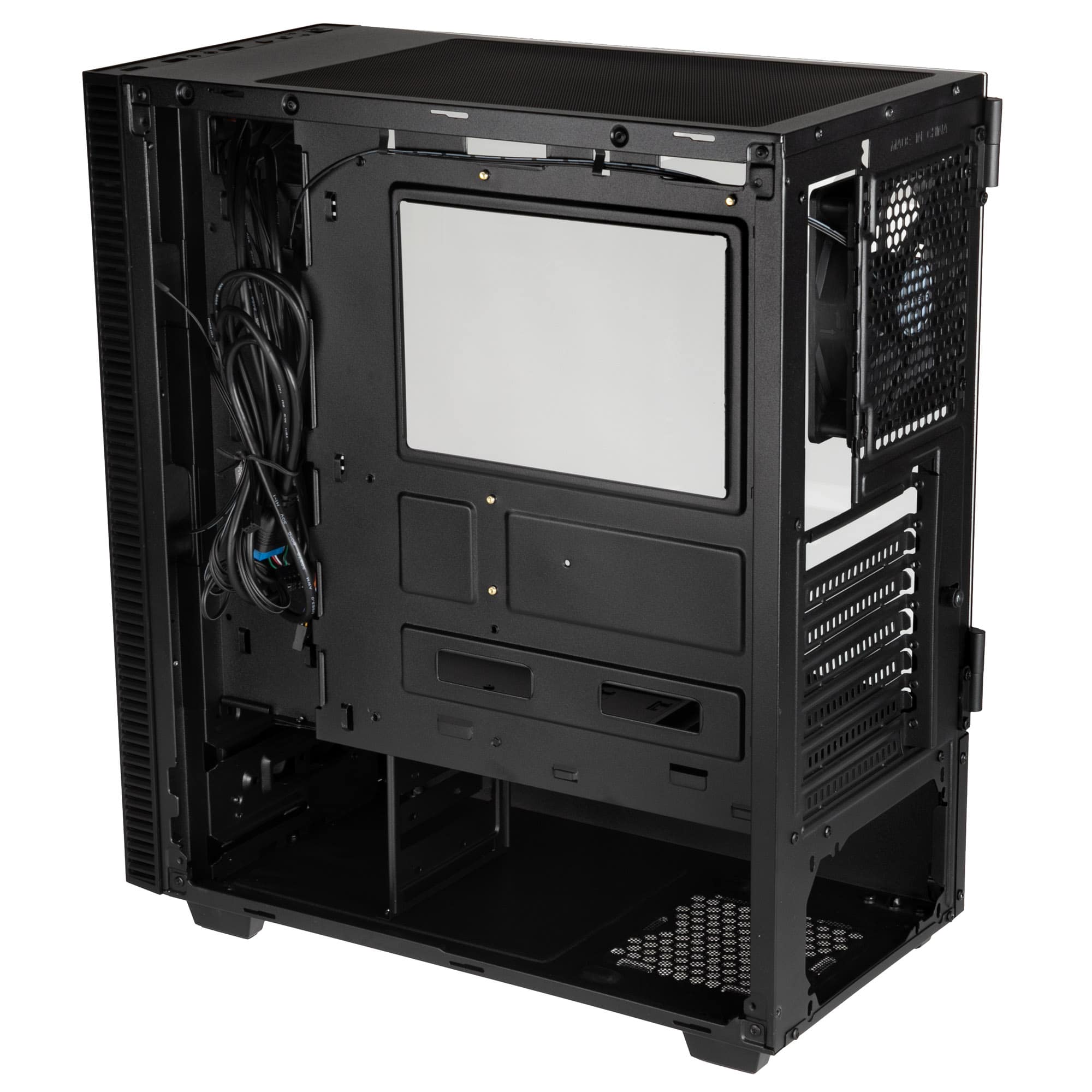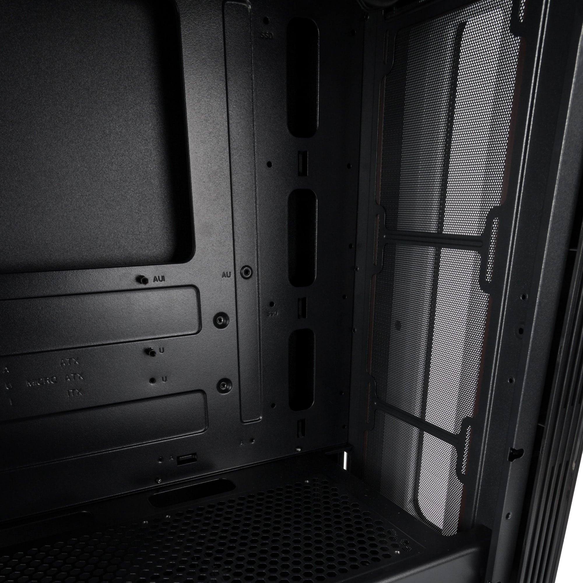 Im Inneren ist Platz für Mini-ITX, mATX- oder ATX-Mainboards sowie Grafikkarten mit bis zu 325 mm Länge. Eine Abdeckung für Netzteile ist ebenfalls vorhanden. Ab Werk wird ein 120 mm großer Lüfter mitgeliefert und es können bis zu fünf weitere Lüfter verbaut werden. An der Front, sowie an der Oberseite bietet sich Platz für jeweils einen 240-mm-Radiator. Die Vorderseite, der Boden und der Deckel sind mit magnetischen Staubfiltern ausgestattet. Es können CPU-Kühler mit einer Höhe von bis zu 160 mm installiert werden. Außerdem können bis zu drei 3,5 Zoll oder 2,5 Zoll Festplatten verbaut werden.