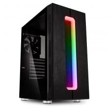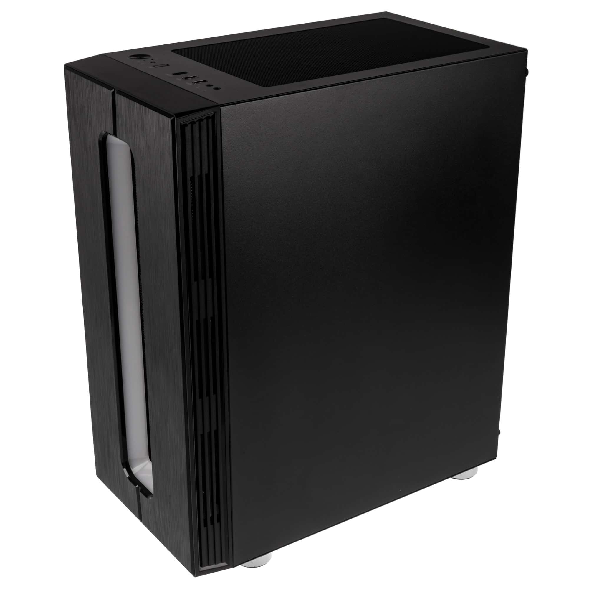 Der Kolink Nimbus beweist sich mit seinem edlen und eleganten Design direkt auf den ersten Blick. Die Front besteht aus Kunststoff im Brushed-Aluminium-Stil und wird von einem großen RGB-LED-Panel verziert. Die linke Seite besteht komplett aus getöntem Temperglas.