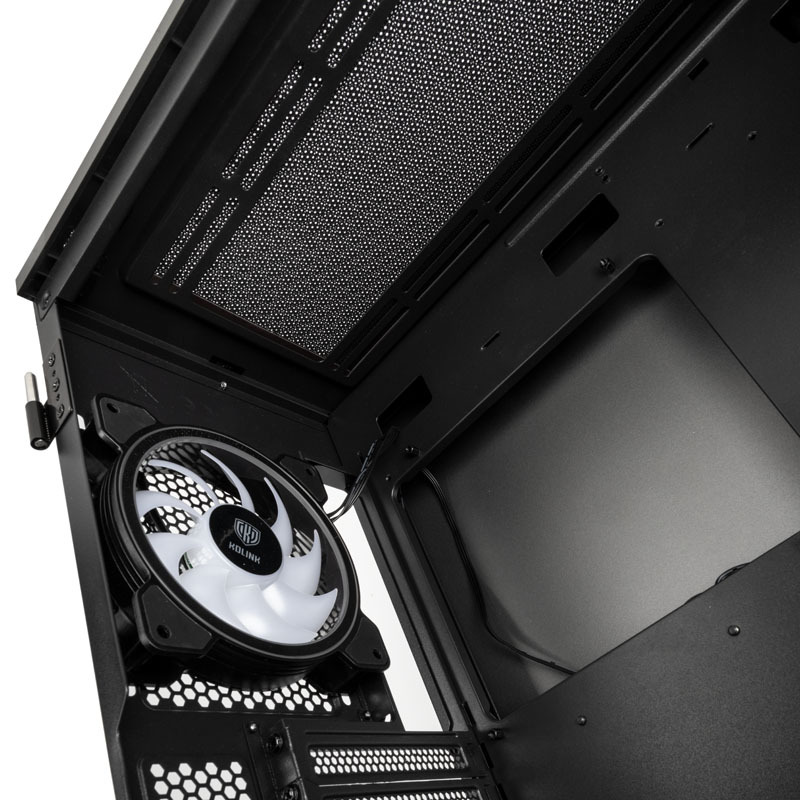 Die gehärtete Glasplatte lässt sich mithilfe der magnetischen Zuglasche leicht öffnen. Dadurch können beide Midi-Tower problemlos mit neuer Gaming-Hardware ausgestattet werden. Kolink Stronghold Prism & Barricade wurden speziell für die Verwendung von AiOs konzipiert, um das Kühlpotenzial zu maximieren.