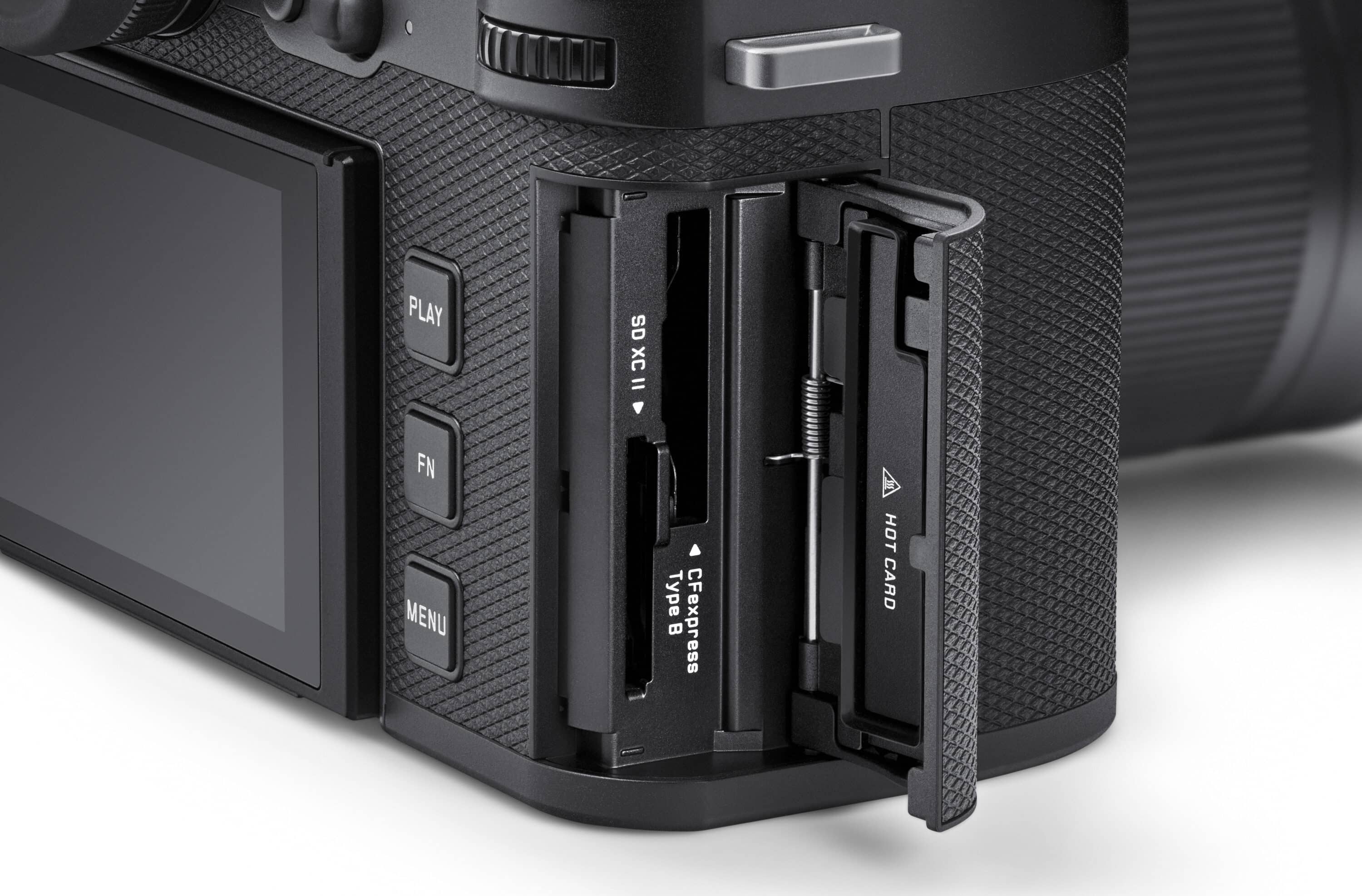 Ebenfalls geboten wird eine „Direct to SSD“-Verbindung, dank der angeschlossene SSDs wie eine Speicherkarte gehandhabt werden, um Fotos und Videos direkt darauf zu speichern. Das erleichtert den Workflow natürlich immens. An Speicherkarten nimmt die SL3-S SD-Karten im UHS-II-Standard, sowie CF-Express-Karten auf.