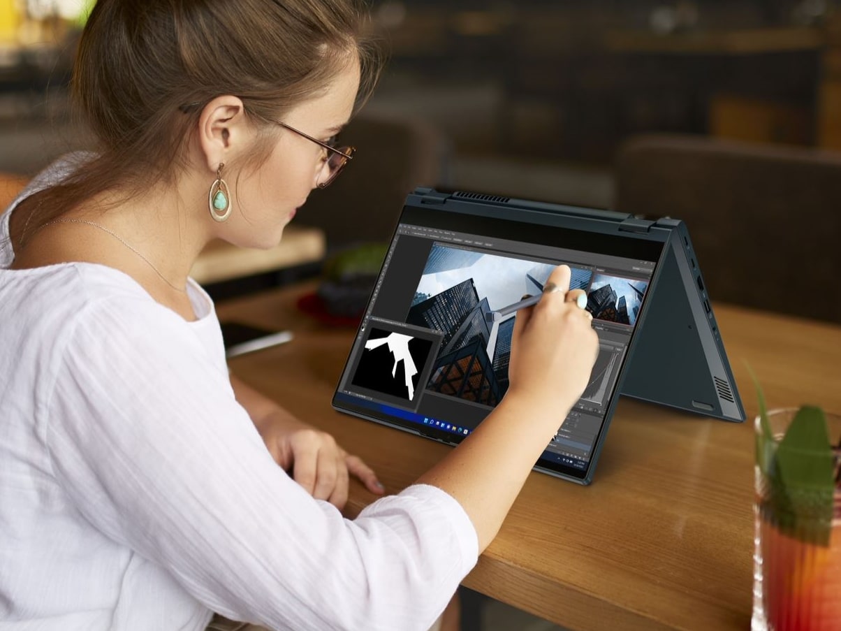 Im Inneren des Convertibles arbeiten Intel-Prozessoren der zwölften Generation, was für starke Leistung sorgt und das Gerät von seinem Vorgängermodell abhebt. Unterstützt wird der jeweils gewählte Prozessor von bis zu 40 GB DDR4-RAM. Hinzu kommt ein interner Speicher von bis zu einem TB, der sich auf zwei M.2-Slots verteilt. Außerdem zu finden ist ein Akku mit einer Kapazität von 60 Wh, der das Gerät mit ausreichend Energie für einen Betrieb von bis zu 8,6 Stunden versorgen soll.