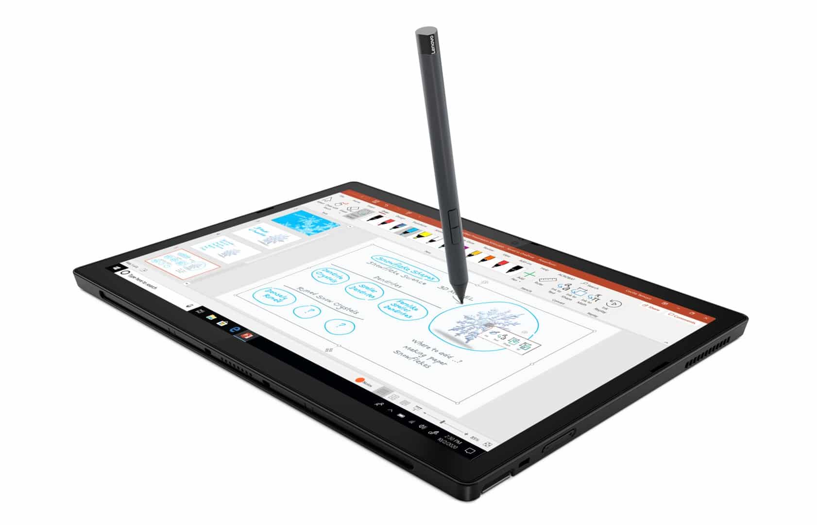 Für eine gute Performance sorgt beim Lenovo ThinkPad X12 Detachable Intels Tiger Lake Prozessor. Hierbei verbaut der Hersteller allerdings nicht das normale Portfolio, er verwendet die gerade neu vorgestellten vPro-Prozessoren. Hier hat sich Lenovo beim X12 Detachable für die 15 Watt TDP-up Variante entschieden. Dabei sollen Prozessoren bis zum Core i7 mit vier Kernen und maximal 4,3 GHz zum Einsatz kommen. Der Arbeitsspeicher kann beim ThinkPad bis zu 16 GB LPDDR4X-RAM konfiguriert werden. Mit einer bis zu einem 1 TB großen PCIe-SSD sollte dann auch genügend Speicherplatz vorhanden sein. Der Akku mit 42 Wh sorgt beim X12 für bis zu 10 Stunden Laufzeit. Natürlich dürfen die Anschlüsse nicht fehlen, das ThinkPad X12 Detachable bietet oben links einen Thunderbolt 4 Anschluss, wodurch der Anschluss der neuen Thunderbolt-4-Docks von Lenovo ermöglicht wird. Dazu kommt noch ein USB 3.2 Typ C Anschluss, ein Nano-SIM Slot für die LTE-Konnektivität und ein 3,5-mm-Klinken-Anschluss für Mikrofone oder Kopfhörer. Zusätzlich funkt das Lenovo ThinkPad X12 Detachable mit Wi-Fi 6, Bluetooth 5.1 und auch per NFC können Daten übertragen werden.