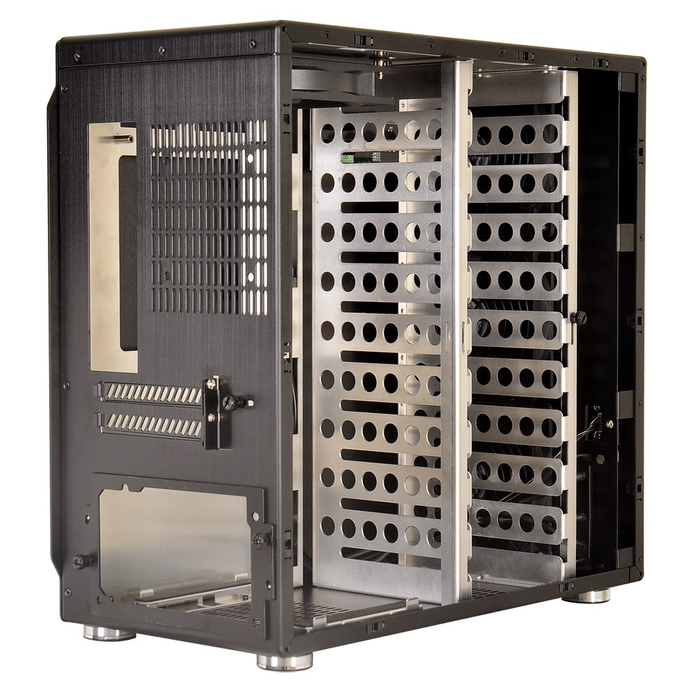 Lian Li hat am Donnerstag ein neues Mini-ITX Gehäuse vorgestellt, welches sich vor allem an Kunden richtet, die ein NAS einrichten möchten. So ist nur der Einbau eines Mini-ITX Mainboards möglich und die Grafikkarte kann auch nicht besonders lang sein, dafür wurde jedoch für eine gute Belüftung und jede Menge Platz für Festplatten gesorgt. Bis zu 10 3,5″ Festplatten und eine zusätzliche 2,5″ Festplatte können eingebaut werden.