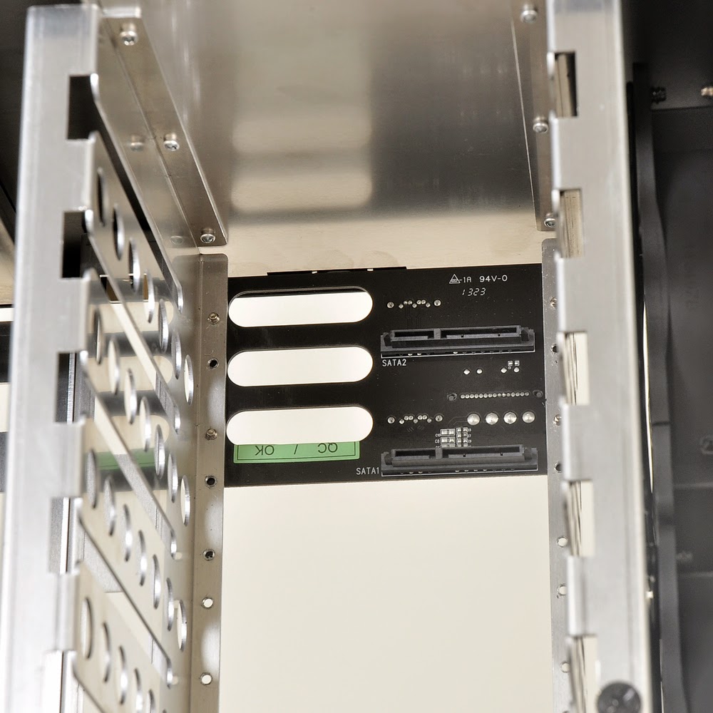 - Hot-Swap-Backplanes für zwei 3,5“ Schächte enthalten (mehr verfügbar)