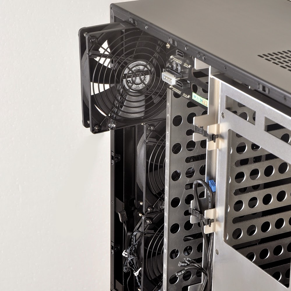 - Drei 120mm Frontlüfter, Platz für 120mm Lüfter oben und 80mm hinten