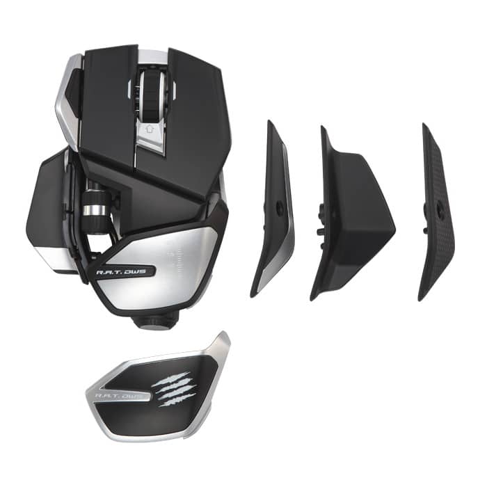 Die Mad Catz R.A.T. DWS Gaming-Maus besitzt einen hochauflösenden PAW3335DB-Sensor mit 16.000 DPI und dürfte so für Gamer genügend Performance bieten. Für Zocker könnte sie auch dahingehend interessant werden, da sie durch ihre modularen Bauteile an zahlreiche Gaming-Situationen angepasst werden kann. Ob kleine Hände oder große Hände – mittels austauschbarer Ablagen für die Handfläche und den kleinen Finger sind verschiedene Griffstile bequem möglich. Die Fingerstützen weisen zudem eine rutschfeste Oberfläche auf und ermöglichen so auch nach mehreren Stunden ein zuverlässiges Handling. Die dazu passende Mad-Catz-Software ermöglicht eine individuelle Belegung der insgesamt 14 Schaltern mit diversen Funktionen und Makros. Diese lassen sich dann in vier Profilen auf der Maus selbst sichern.