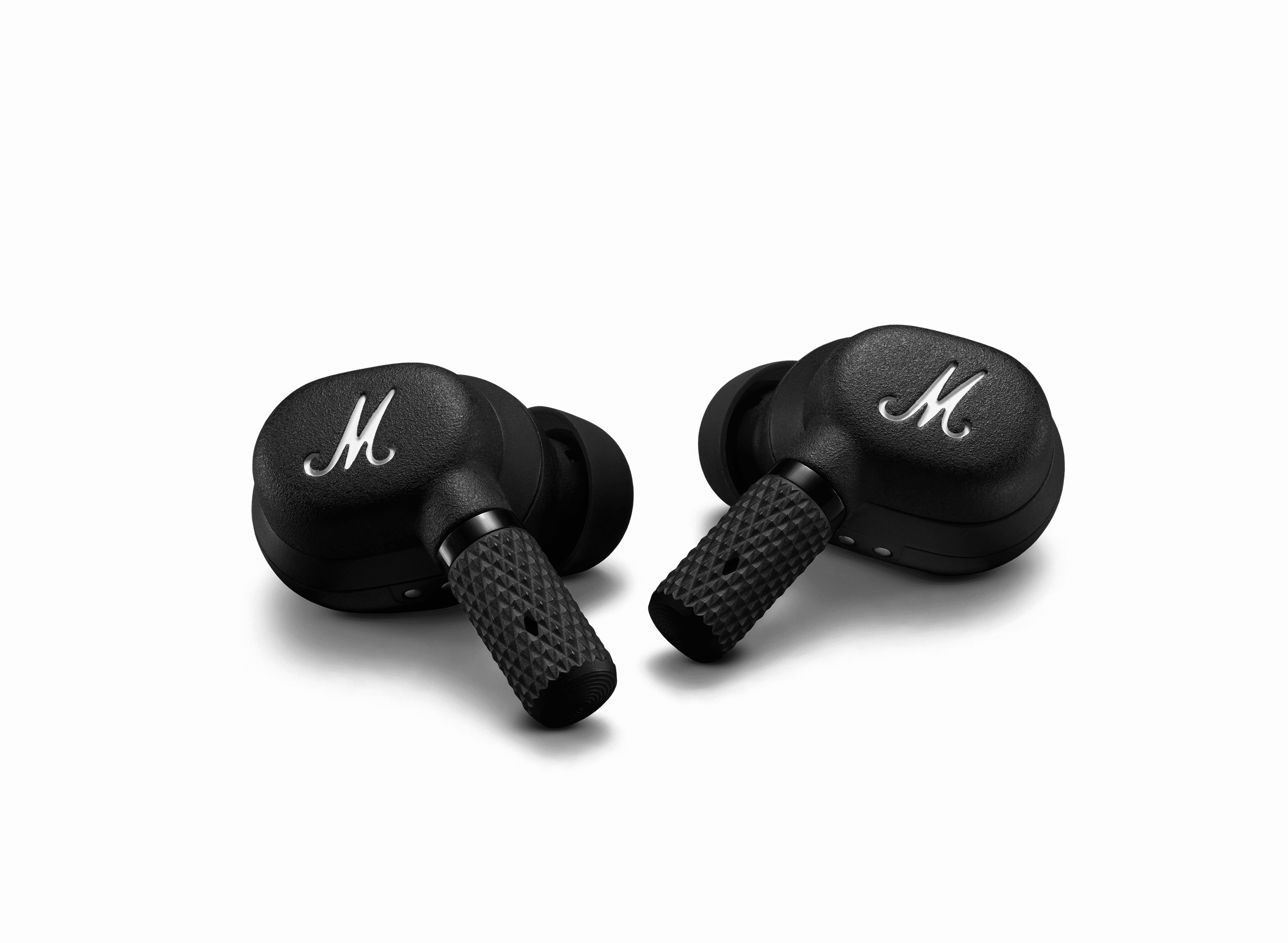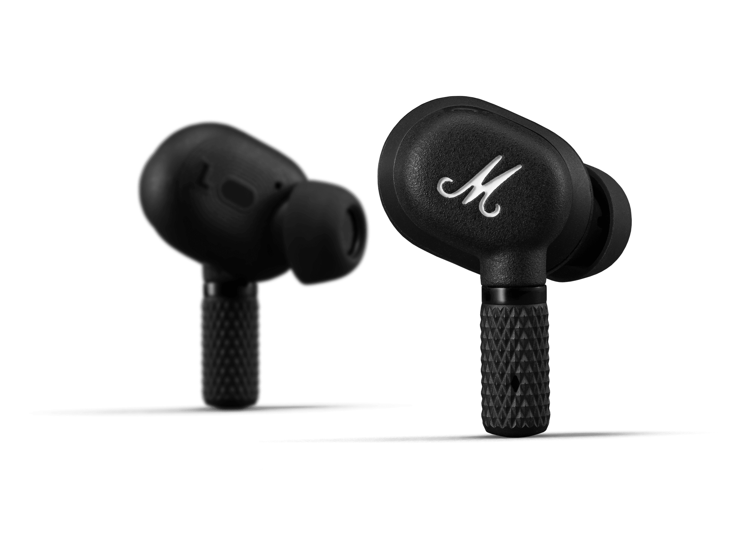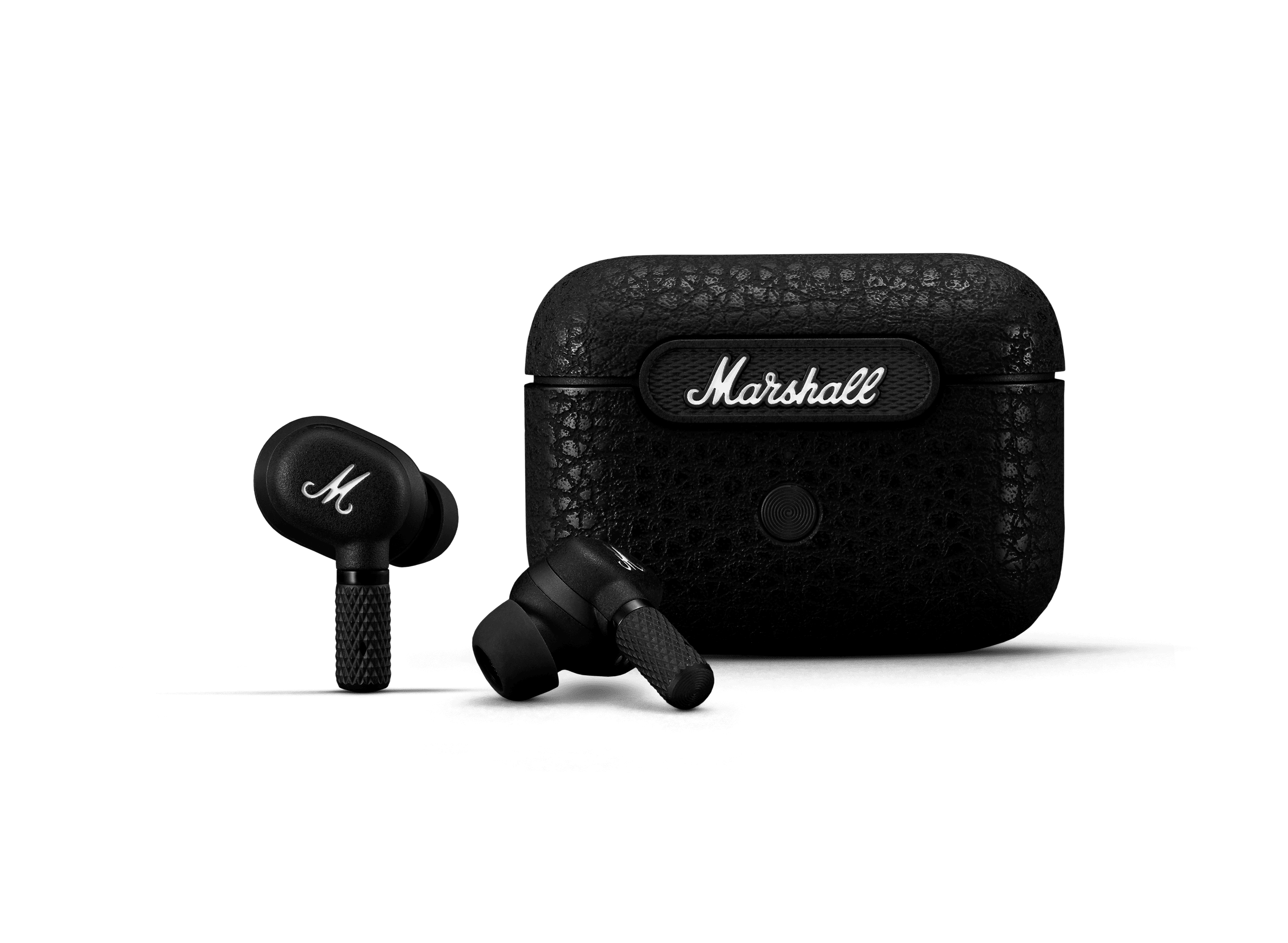 Die Marshall Motif A.N.C. stellen dabei auch das erste Modell des Herstellers dar, das eine aktive Geräuschunterdrückung (ANC) bietet. Hinsichtlich der Formgebung erinnern sie an die meisten aktuellen In-Ear-Kopfhörer, warten allerdings im Marshall-typischen, schwarzen Look auf. Vor allem die unteren Stifte weisen eine auffällige Perforierung auf.