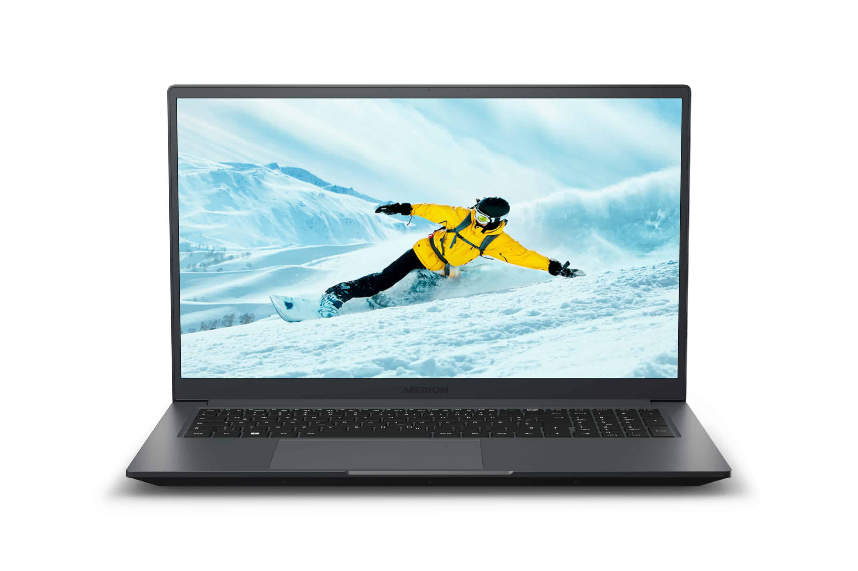 Der MEDION AKOYA P17619 besticht durch sein schlichtes und elegantes Design. Das Gehäuse ist 2,45 Zentimeter dick und wiegt 2,1 Kilogramm. Der Displaydeckel besteht aus Metall, was dem Laptop ein hochwertiges Aussehen verleiht. Ein besonderes Merkmal ist die Unterseite des Laptops, die zu 30 Prozent aus recyceltem Kunststoff besteht. Dies zeigt das Engagement von MEDION in Bezug auf Nachhaltigkeit.