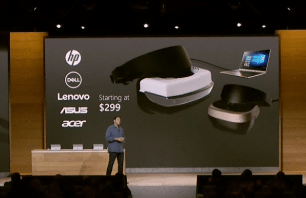 Microsoft hat eine Folie mit neuen Mixed Reality Brillen gezeigt, die ab 299 Dollar beginnen sollen! Das liegt preislich bei der Hälfte der HTC Vive oder Oculus Rift und ist somit durchaus konkurrenzfähig. Als Partner werden HP, Asus, Lenovo, Acer und Dell gezeigt.
