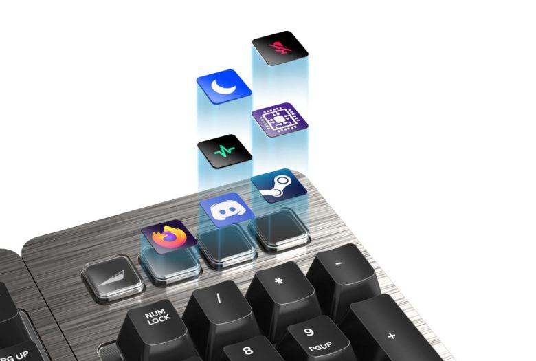 Oberhalb des regulären Ziffernblocks finden sich hier zudem vier Sondertasten, in denen ein Display integriert ist. Hier könnt ihr dann diverse Icons für Programme und Spiele anzeigen lassen. Das Media-Dock bietet zudem ein Display-Drehrad, mit ihr diverse Einstellungen vornehmen könnt. Die sonstigen Tasten weisen eine gebräuchliche RGB-Beleuchtung auf, die das Zocken im Dunkeln erleichtern. Abgerundet wird die Everest durch ein USB-3.2-Gen1-Hub.