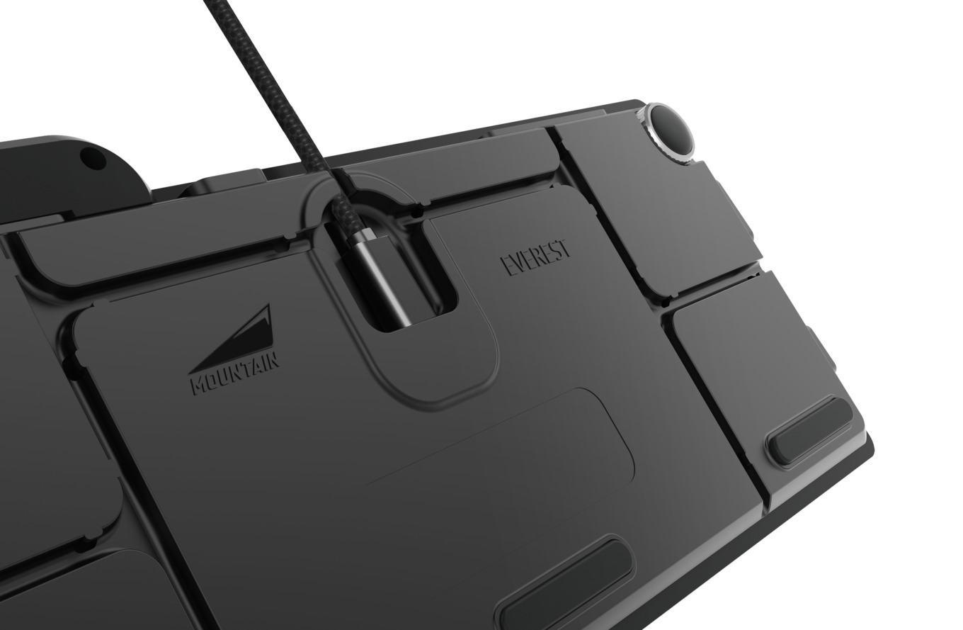 Das Oberfläche des Gehäuses der Mountain Everest besitzt ein Finish aus gebürstetem Aluminium, während sich auf der Unterseite Kanäle befinden, in die ihr das Anschlusskabel klemmen und leiten könnt. Modulare magnetische Standfüße sind ebenfalls an der Unterseite anzubringen und sorgen für den richtigen Winkel.