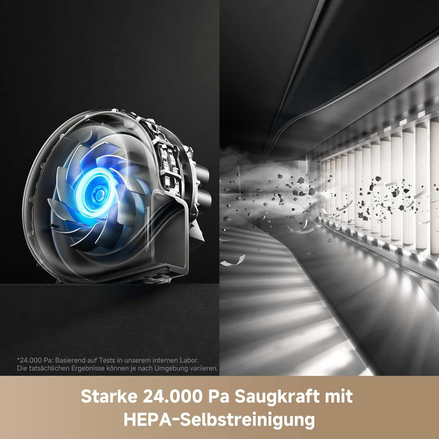 Das verspricht eine umfassende Reinigung auf den verschiedensten Bodenbelägen. Dabei bleibt der V50 nicht nur oberflächlich gründlich: Ein integriertes HEPA-Filtersystem sorgt für saubere Luft, während drei Anti-Verhedderungsmechanismen verhindern, dass sich Haare im Inneren festsetzen. Das macht ihn besonders interessant für Haushalte mit Tieren.