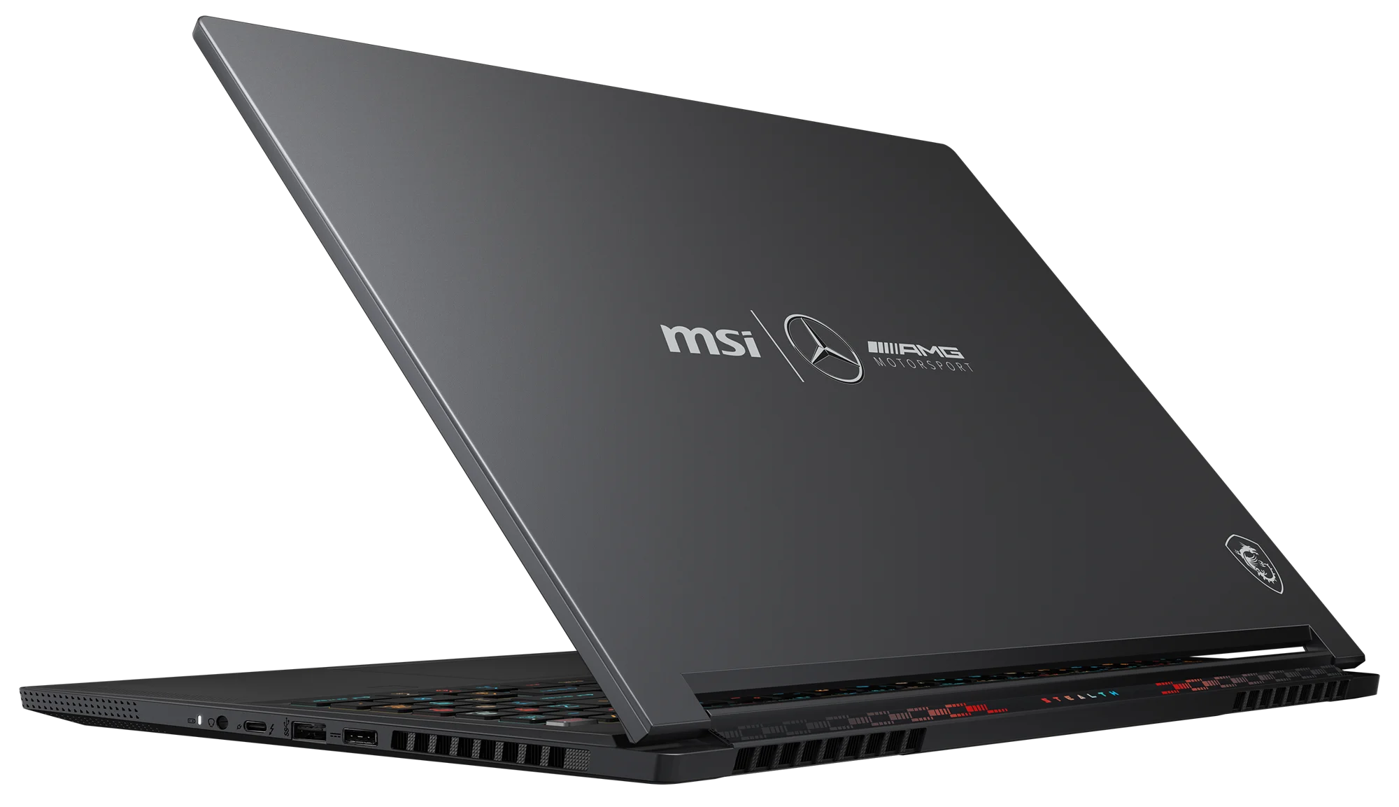 MSI hat eine limitierte Edition des Stealth 16 vorgestellt, die in Zusammenarbeit mit Mercedes-AMG entwickelt wurde. Das Design des Gaming-Notebooks wurde von Rennautos inspiriert und verfügt über ein Carbon-Muster um die Webcam, ein Magnesium-Gehäuse in Selenitgrau und ein AMG-Rautenmuster. Darüber hinaus sind sowohl am Display-Deckel als auch am unteren Bildschirmrand Mercedes-AMG-Logos zu finden.